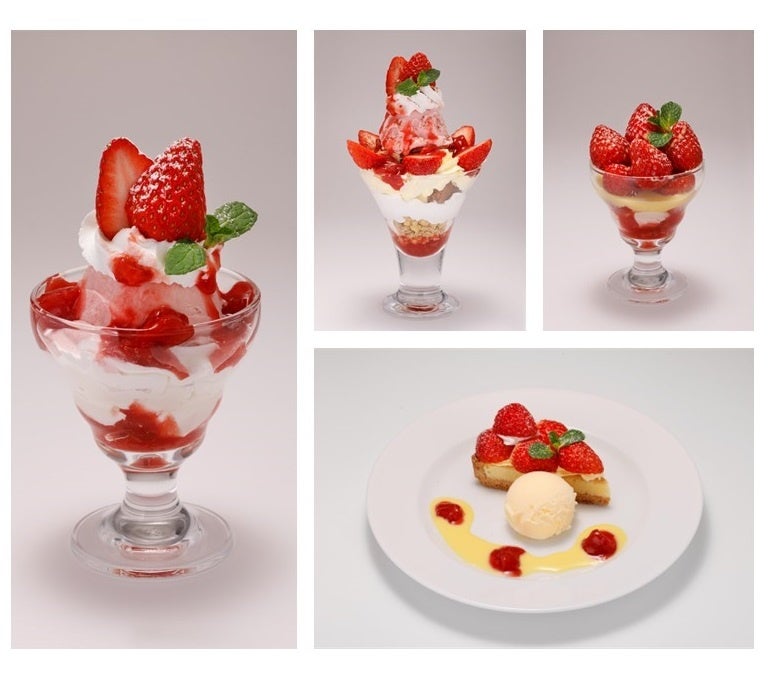 「ころころ苺のアングレーズソース掛け」や「苺のアイスとパンナコッタ」などのミニパフェも