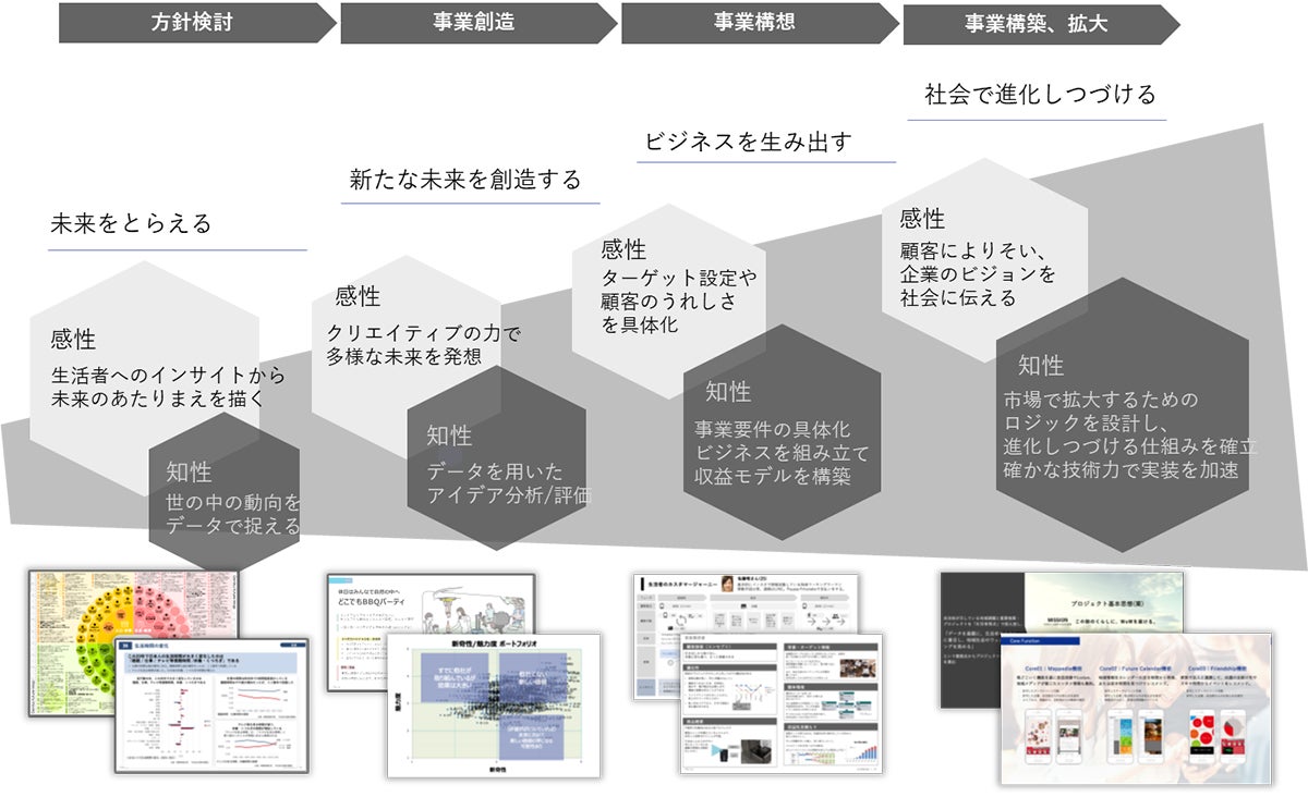 本プログラムは、これまで当社が製造業向けに提供してきたものづくり領域の新規事業創出コンサルティングやソリューションを再定義し体系化することで、生活者インサイトの把握から、未来の社会の構想、新規事業創出、事業計画の策定、事業構築・拡大にいたるまで一気通貫で支援します。