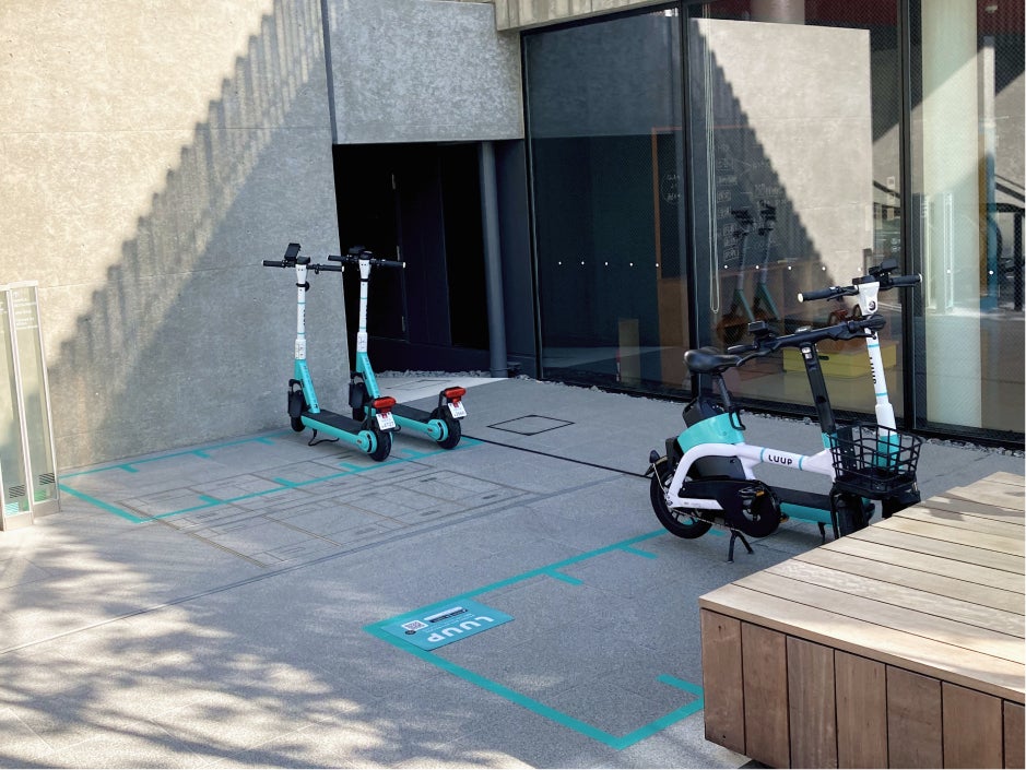スマートフォンアプリ「LUUP」を用いて、電動キックボードや電動アシスト自転車に乗車し、街じゅうにあるポートからポートへの移動ができます。