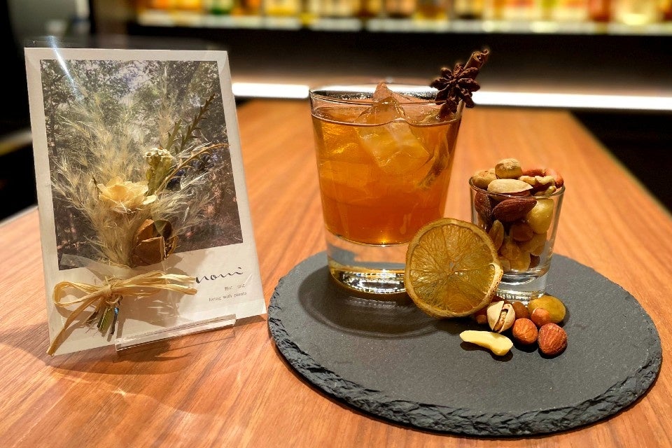 さらに、ご宿泊者さま限定でコンセプトルームをイメージしたホテルオリジナルカクテル「アンティークツリー」をBar & Dining「TORRENT」で1人1杯お楽しみいただけます。noniで1つ1つ制作された手のひらサイズのドライフラワーミニブーケのお土産付きなので、旅の思い出をお持ち帰りいただけます。