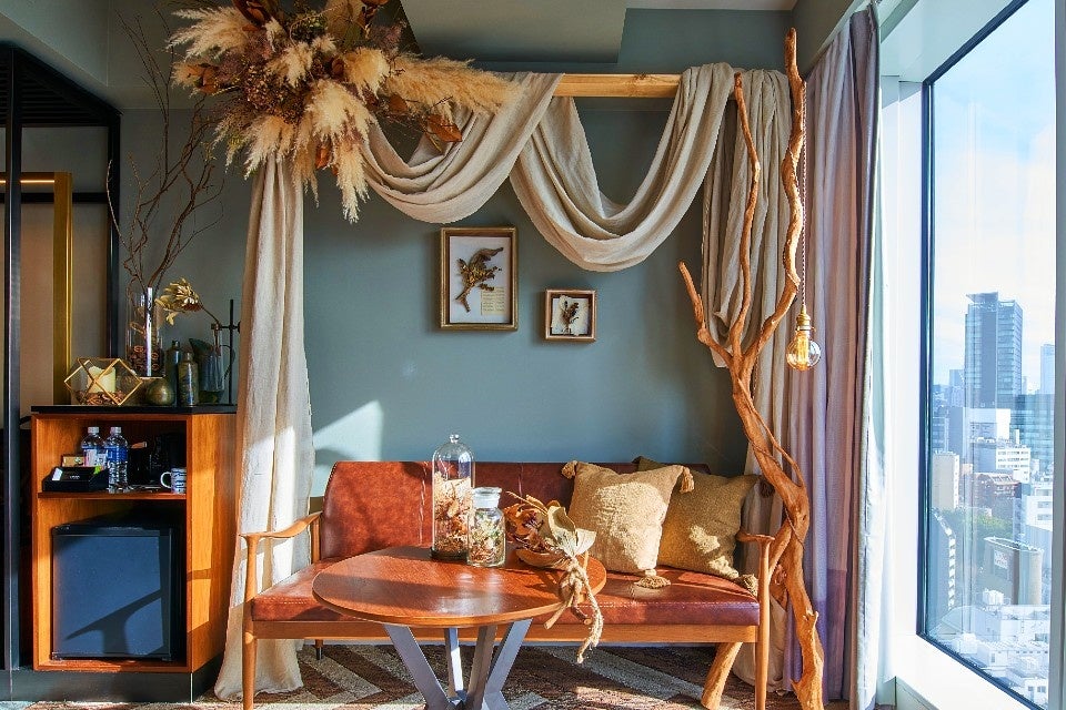 渋谷ストリームエクセルホテル東急(東京都渋谷区、総支配人:八木進午)は、株式会社ガレージ(愛知県豊橋市、代表:二村 昌彦)が運営する「noni」による木々やドライフラワーを施したコンセプトルームnoni fragment room「KAREHANA~枯花~」 を2022年1月19日(水)より1日1室限定で販売いたします。