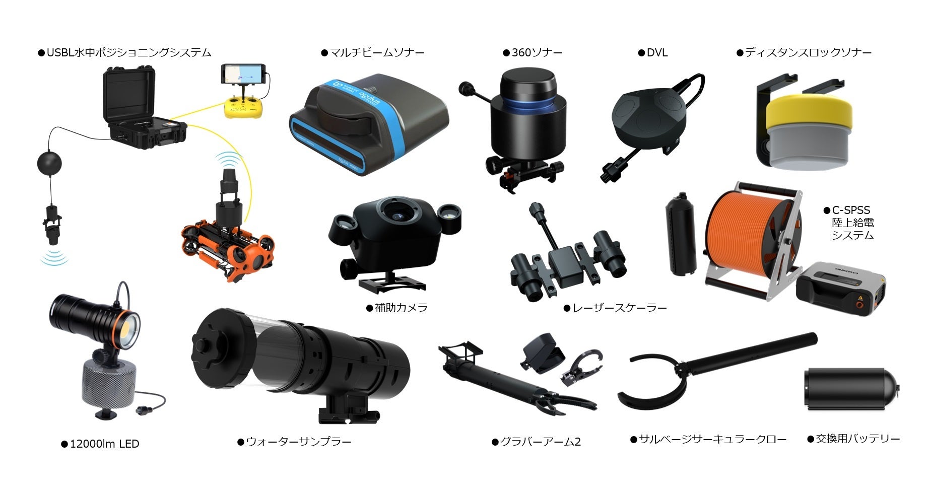 当社は水中ドローンメーカー大手・CHASING社の国内初の正規パートナーとして、豊富なCHASING製品をラインナップしています。なかでもオプション製品は「購入する前に一度試してみたい」という声が多くあります。当社では、CHASING社の製品に搭載可能なオプションを多数用意。ここでしか借りられないオプションも多くあります。