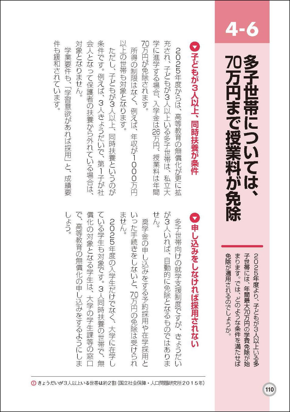 また、2025年度から始まった、多子世帯向けの授業料減免など、近年拡充が進む高等教育の無償化についても、最新の情報を紹介しています。