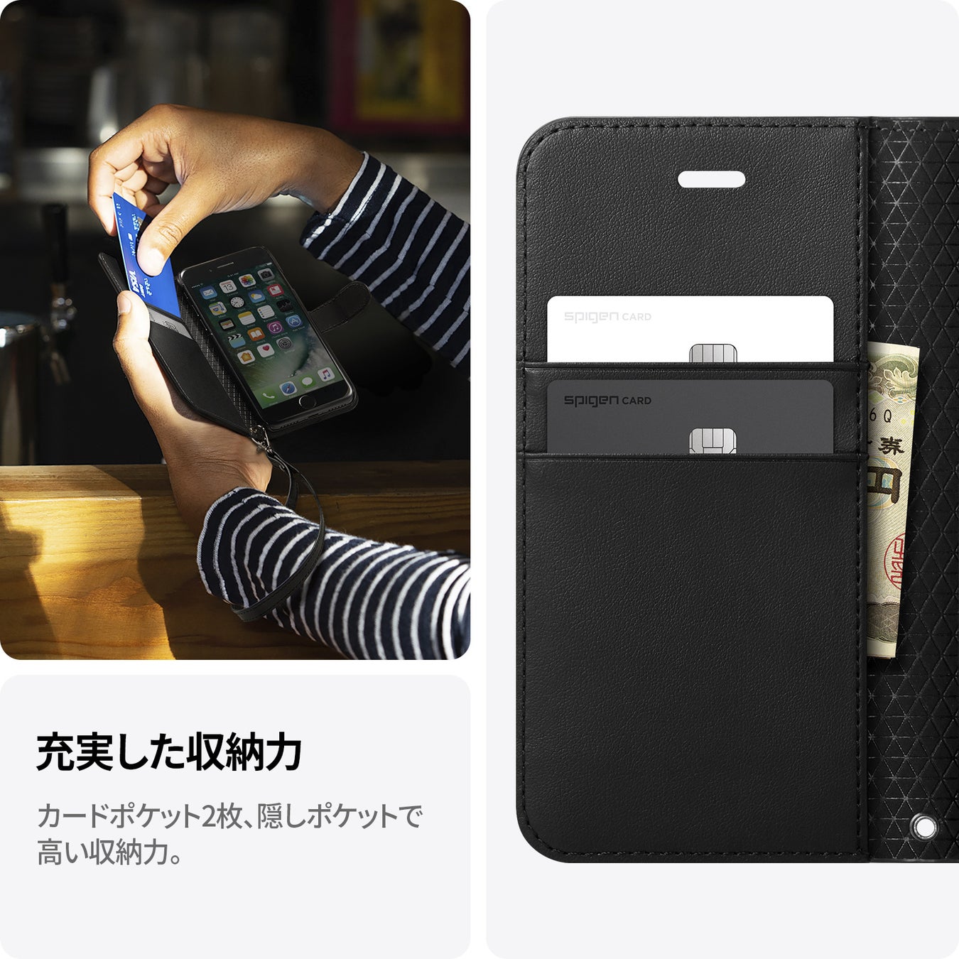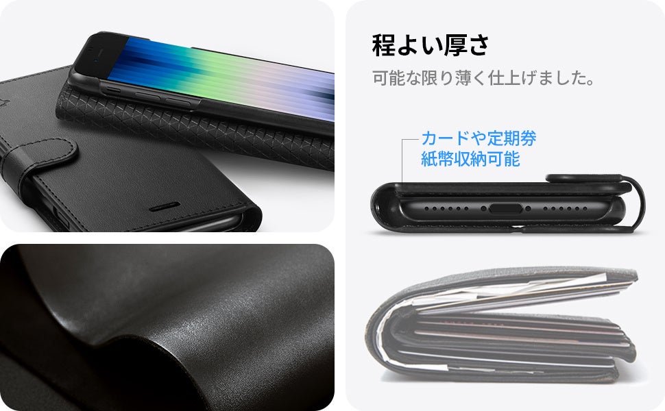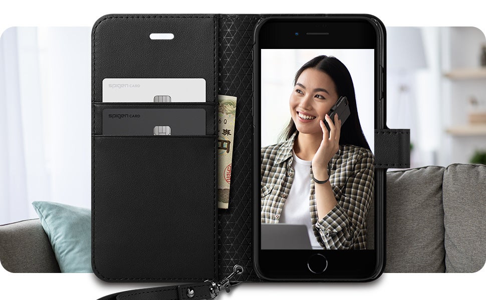 【Spigen】数年間お客様のニーズを集合! SE3の手帳型ケース「ウォレットS」ケースとしてもアクセサリーとしてもパッチリ!