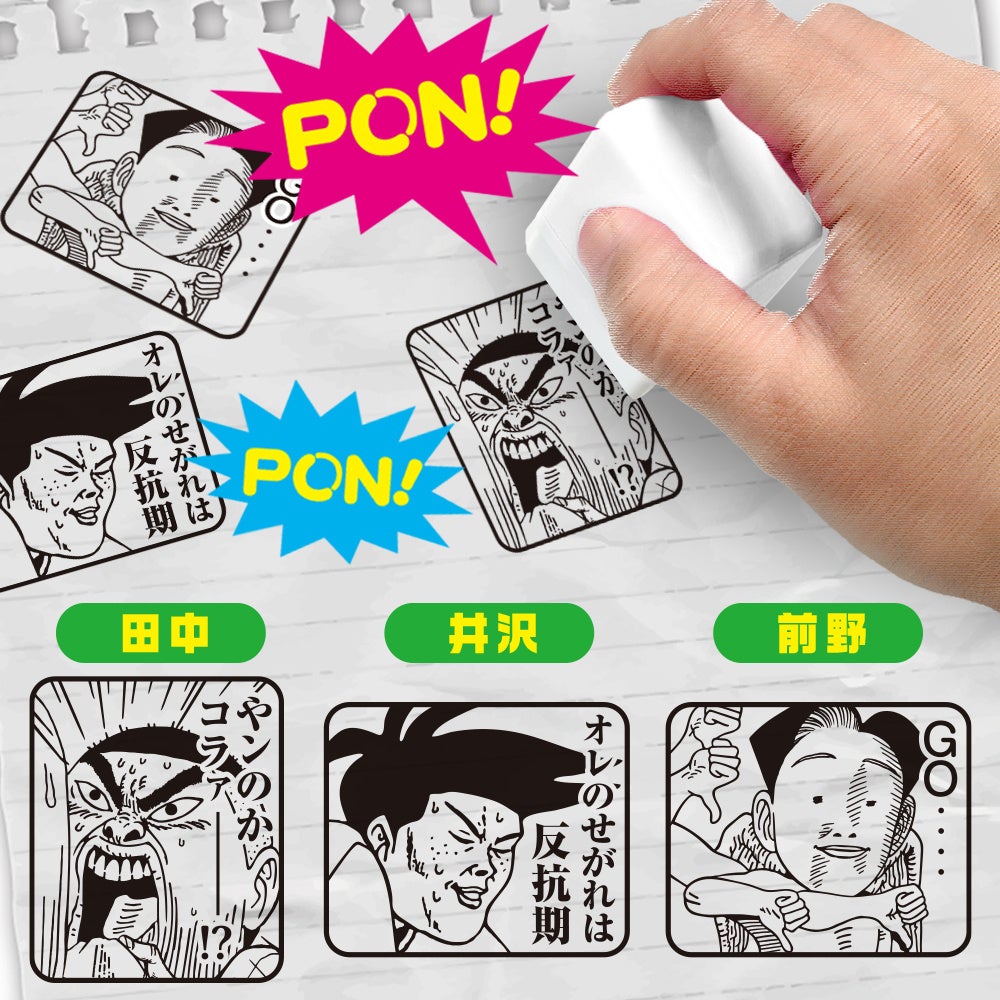 『行け!稲中卓球部』の名場面3種を、自由に押せるスタンプとしてリリース!根性を見せた田中の叫び、ペットボトルを装着した状態の井沢、前野の中の天使が悪魔になった瞬間の名場面3種類!どれも汎用性が高いので(?)リアルに使って押しまくろう!