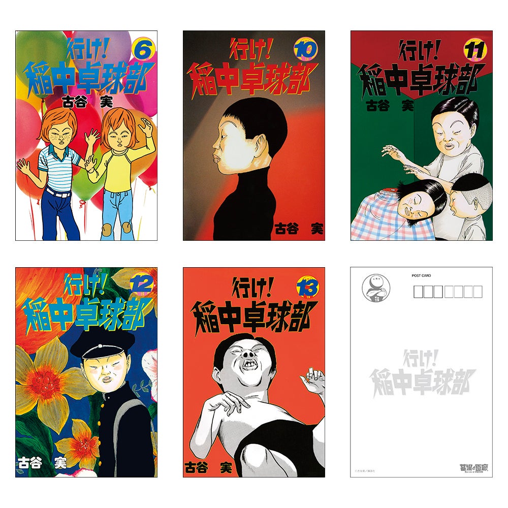 毎回ポップで意味深でインパクトの強い『行け!稲中卓球部』コミックスの表紙たち。表紙のイメージで内容を覚えているファンも多いのでは?その全13巻の中から、今回は6、10、11、12、13巻の5冊をピックアップし、ポストカードセットとしてリリース!