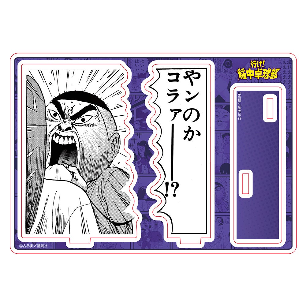 『行け!稲中卓球部』の傑作ギャグシーンが、立体的なアクリルスタンドになって登場!今も脳裏に焼き付いているあの1コマが、躍動感を持って鮮明に蘇る!?自宅の本棚や玄関において自分好みの純度を高めたり、職場のデスクの上においてストレス発散の効果もあるとかないとか?
