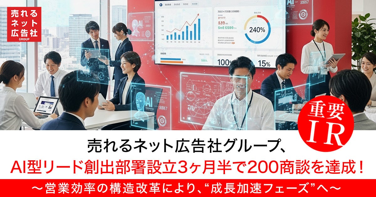 売れるネット広告社グループ、AI型リード創出部署設立3ヶ月半で200商談を達成!~営業効率の構造改革により、“成長加速フェーズ”へ~
