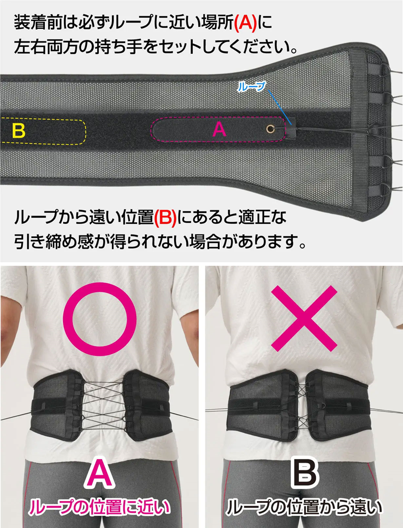 ※着用前に、下の写真を参考に締め上げベルトの位置を確認してください。