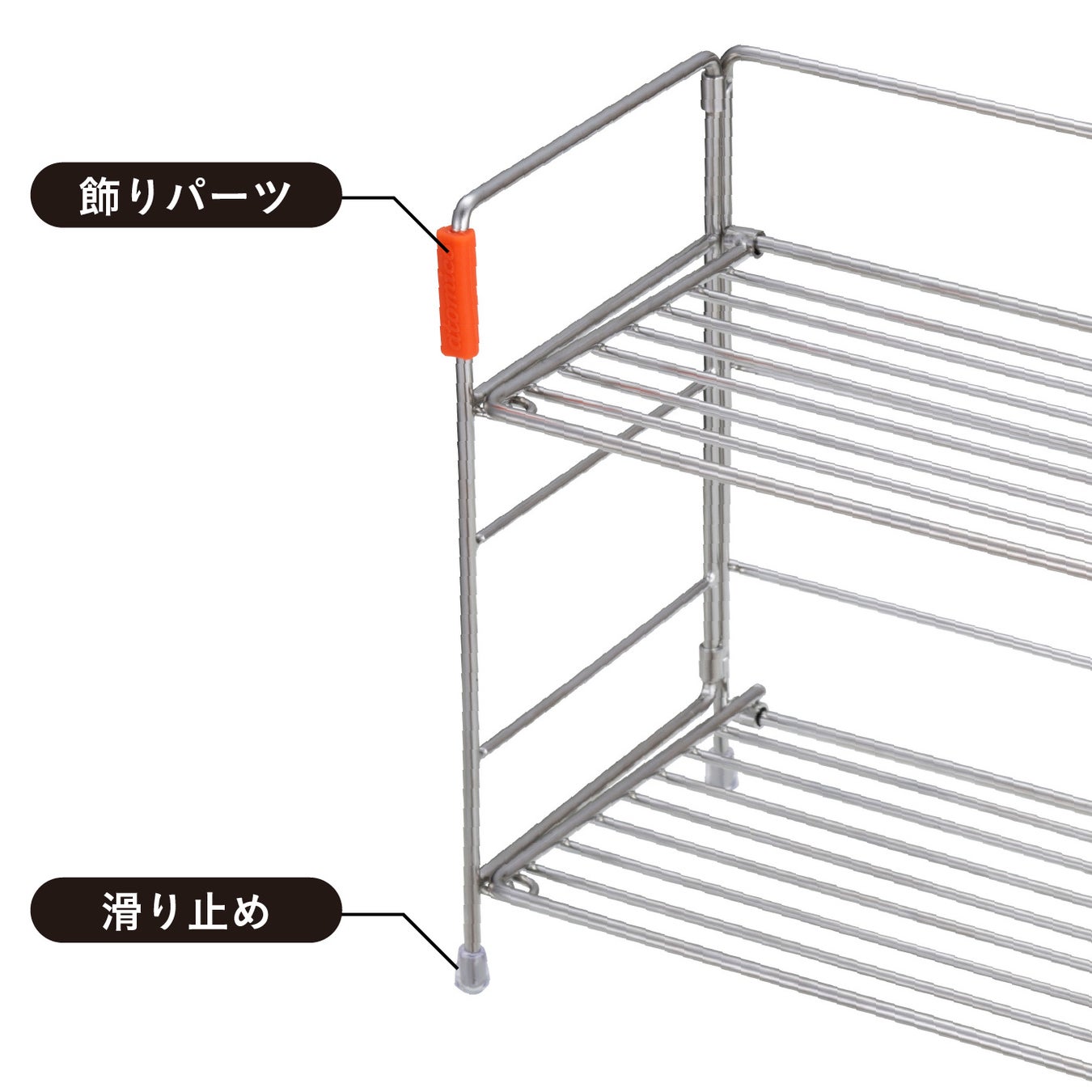 シンプルで無駄のない構造。1段でも2段でも使える、機能的なステンレスラック。