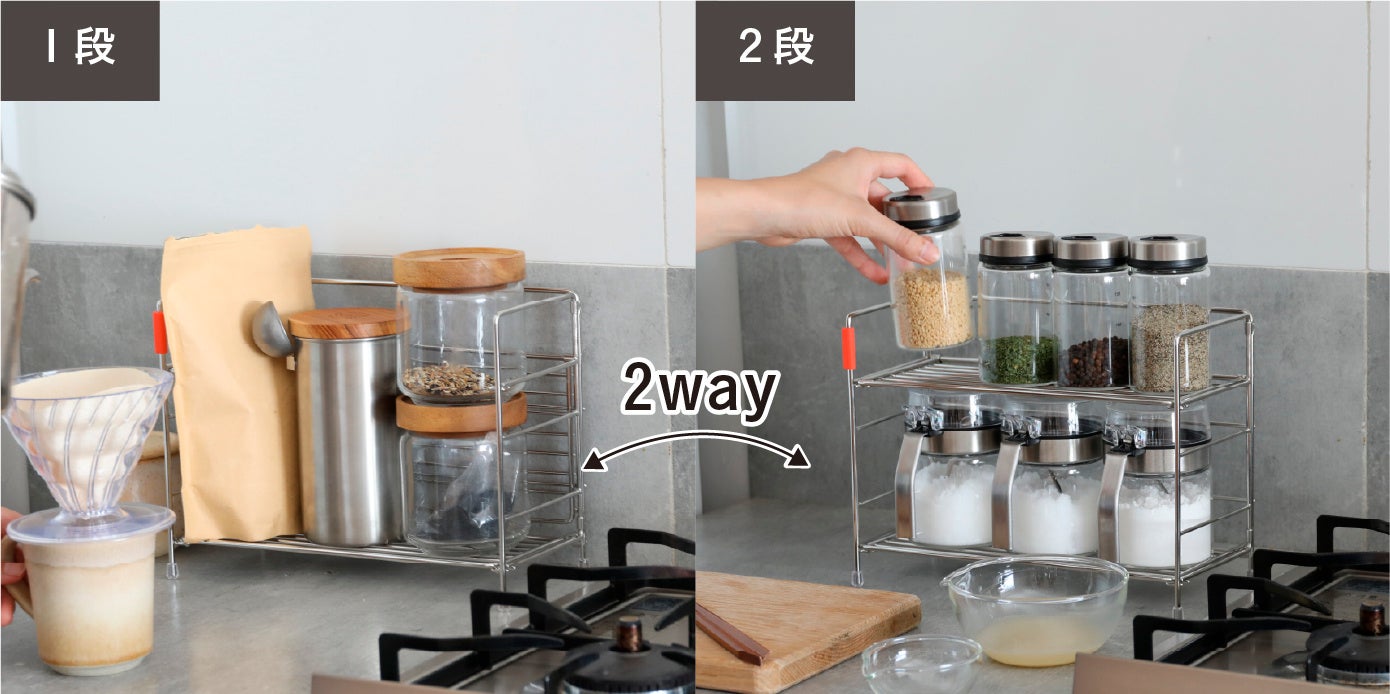 1段でも2段でも使える2wayで、キッチンのスペースや用途に合わせて自在にアレンジ可能。