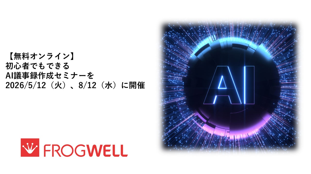 フロッグウェル株式会社は、AIを活用して議事録を自動生成する手順を学べる無料オンラインセミナーを2026年5月12日(火)、8月12日(水)に開催いたします。