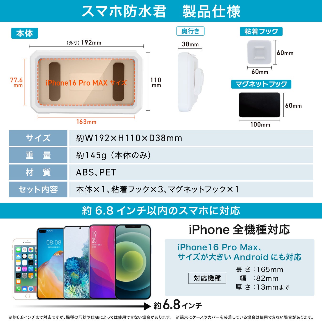 スマホ防水君マグネットプラスの主な特長: