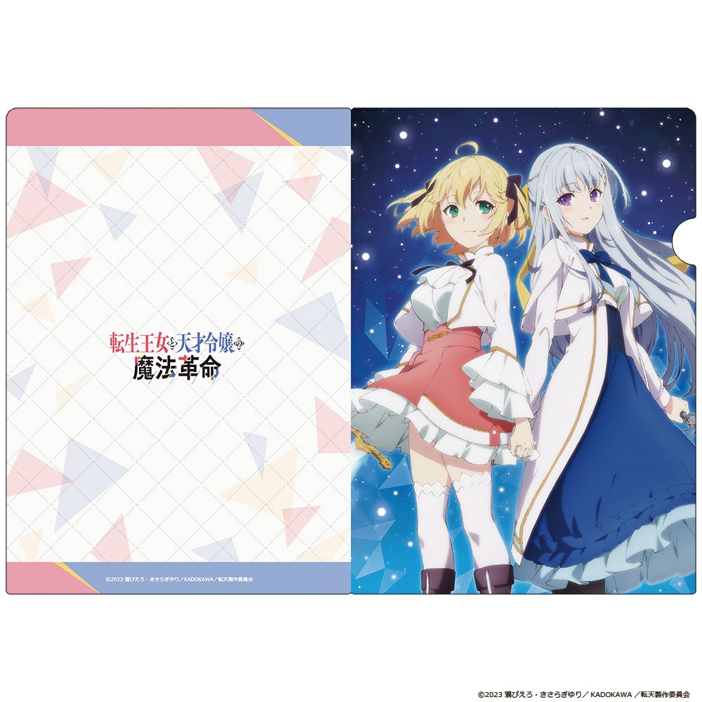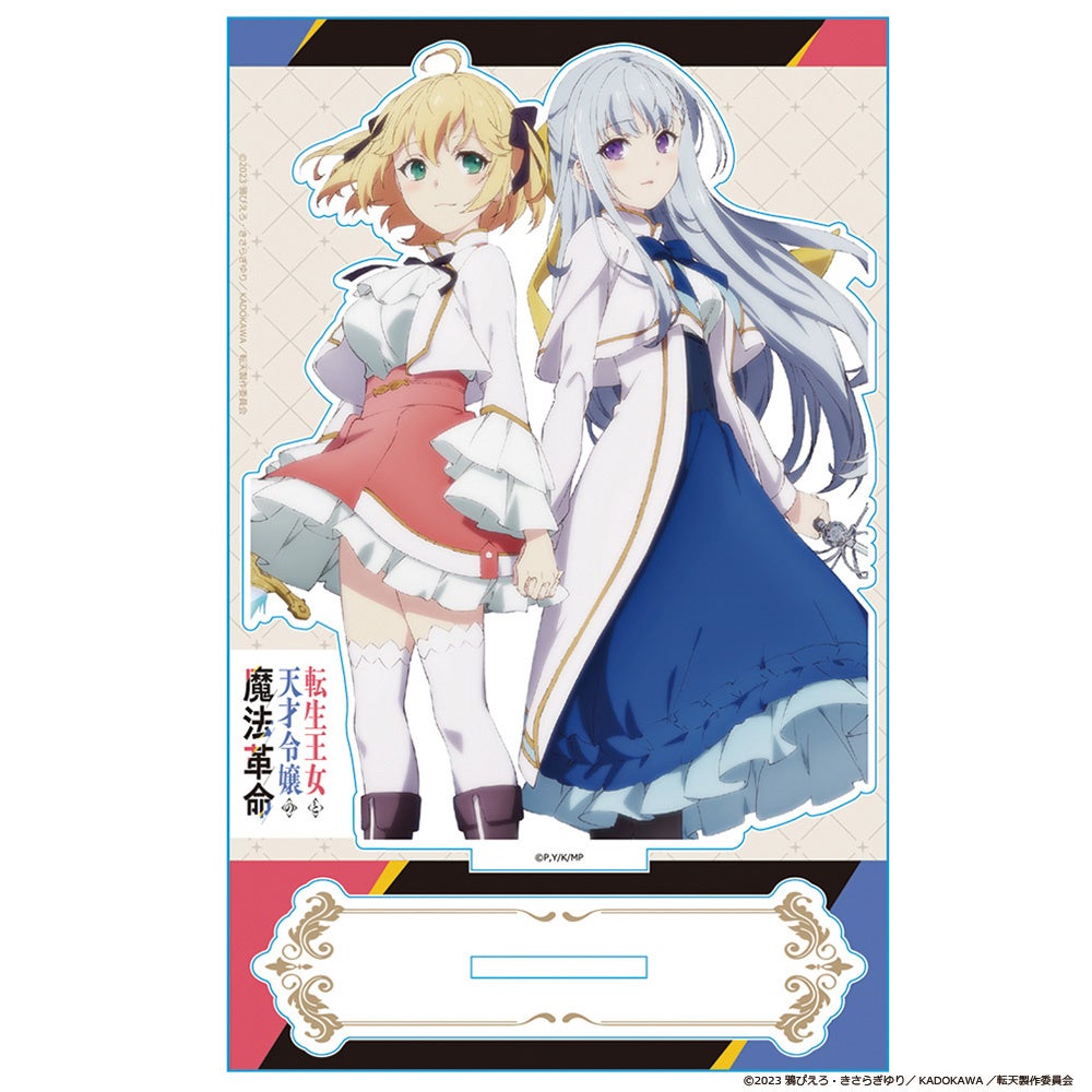 「転生王女と天才令嬢の魔法革命」クリアファイル、アクリルキャラスタンド、Tシャツ、B2タペストリー、キャラクターラバーマットの受注を開始!