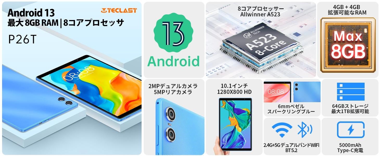 Teclast人気商品「T50」限定セール開催中、新型Android 13タブレットの「P26T」はAmazonで販売します!WideVine L1対応/GPSサポート/通話+WiFiモデル