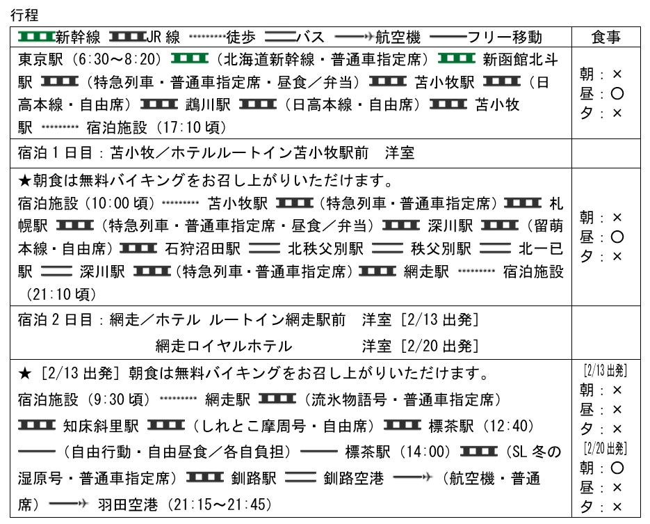 冬の北海道を代表するローカル線と観光列車を一度にお楽しみいただけます。