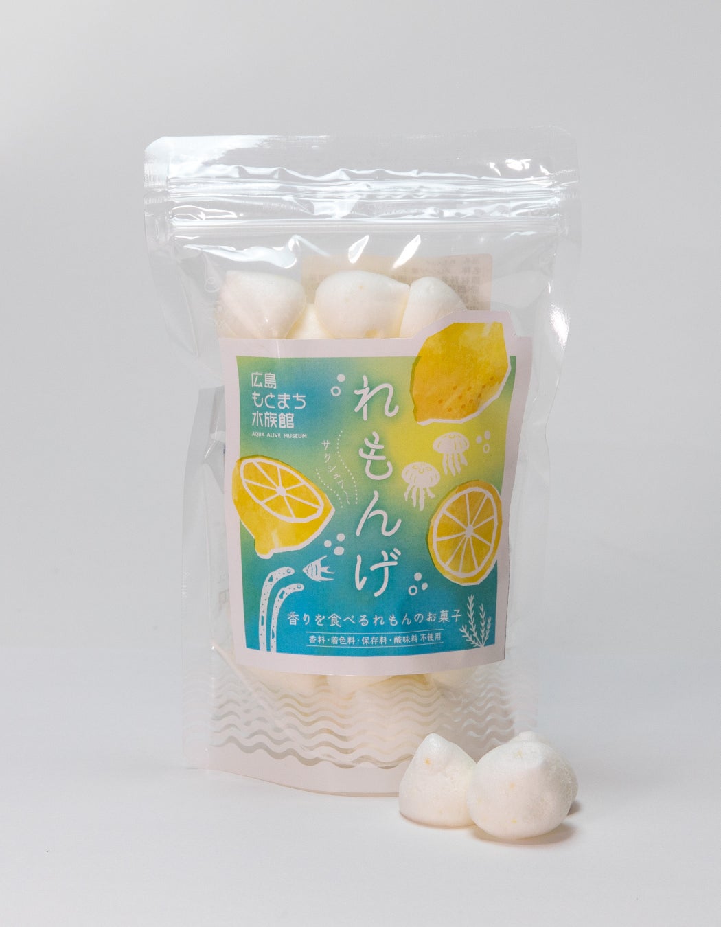 とびしまレモンの香りと酸味メレンゲで優しく包み、米粉を加え低温でゆっくり焼き上げた、広島ならではのお菓子。サクッとした食感があっという間に消え、口いっぱいに爽やかな香りと甘酸っぱさを残す不思議なお菓子です。さわやかな水族館オリジナルデザインで、お土産にもぴったり。