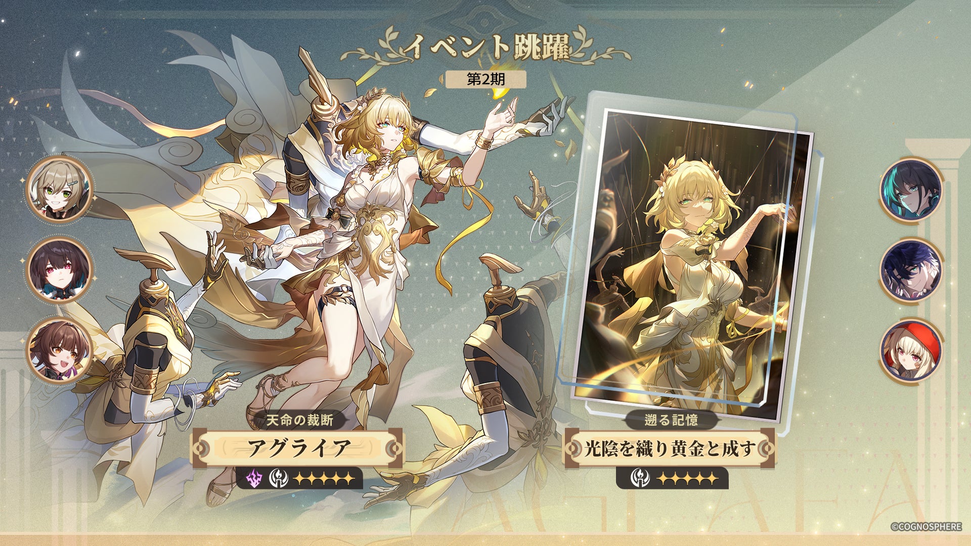 さらに、限定星5キャラクター「アグライア」(CV:遠藤綾)が再登場!イベント跳躍「天命の裁断」にて「アグライア」の出現率がアップします!