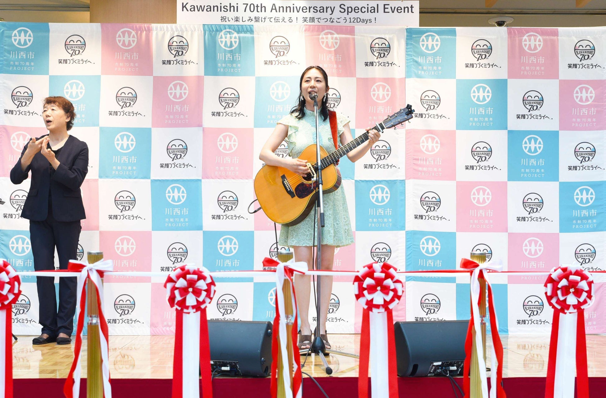 その一環として、記念日となる8月1日に、リニューアルしたアステ川西1階広場のお披露目となるオープニングセレモニーや、市出身のシンガーソングライター 植村花菜さんのかわにしふるさと大使就任式、ミニライブなどが開催されました。