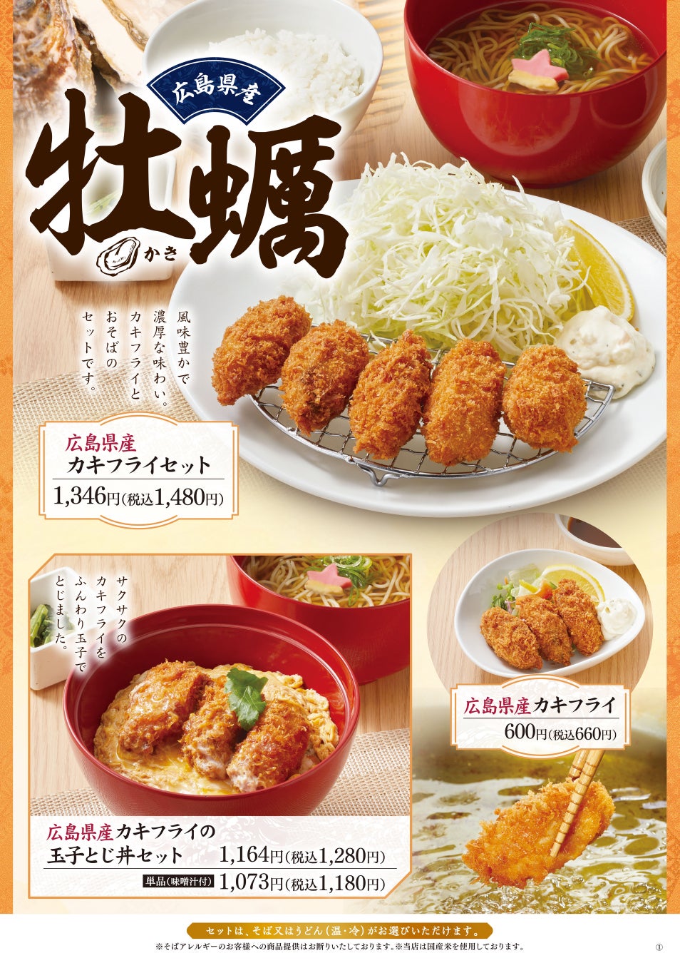 株式会社家族亭(本社・大阪府大阪市、代表取締役社長・坪山 憲司)が運営するそば和食チェーン「家族亭」は、2024年8月27日(火)~12月15日(日)の期間にこれから旬を迎える広島県産牡蠣(かき)を使用した、広島県産カキフライフェアを実施します。広島県産牡蠣を揚げたてのカキフライで、とんかつソースとタルタルソースで味わう「広島県産カキフライセット」や、家族亭自慢のだし香る丼だしにサクサクのカキフライを玉子でとじた「広島県産カキフライの玉子とじ丼セット」がおすすめです。ぜひお楽しみください。