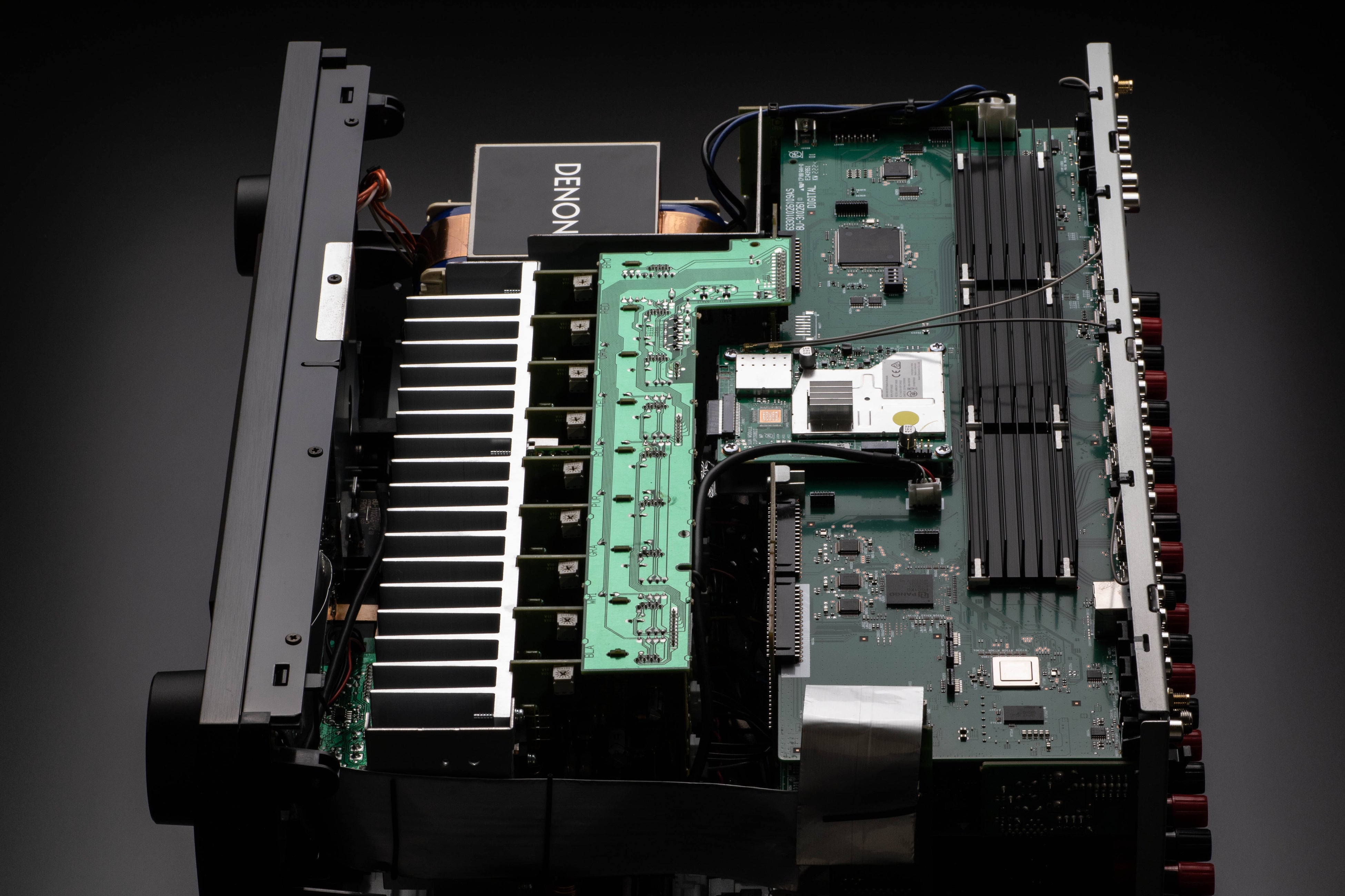 サウンドクオリティについては、ロスレスオーディオやイマーシブオーディオの真価を引き出し、ダビングステージに迫るサウンドをホームシアターで再現すること。このデノンのAVアンプが目指す理想を具現化するために、上級機にのみ搭載される、「D.D.S.C.-HD32」、「AL32 Processing Multi Channel」、そして「クロック・ジッター・リデューサー」を搭載しています。もちろんAVR-X4800Hについてもすべてのデノン製品の音質チューニングを手がけるサウンドマスター山内慎一が徹底的な試聴を繰り返して音質をまとめ上げています。音質担当エンジニアと共にこれまで長年にわたって培ってきた知見とカスタムメイドの高音質パーツ、回路設計技術を最大限に活用し、クラスを超えたクオリティにまで引き上げ、Hi-Fiオーディオに肉薄する忠実性を実現しています。