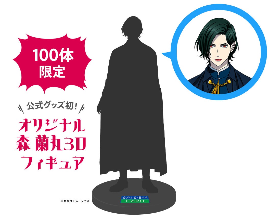 新規カードご入会およびご利用で、公式グッズで初となる「森 蘭丸」のオリジナル3Dフィギュアやカード券面型ステッカーを抽選でプレゼントいたします。