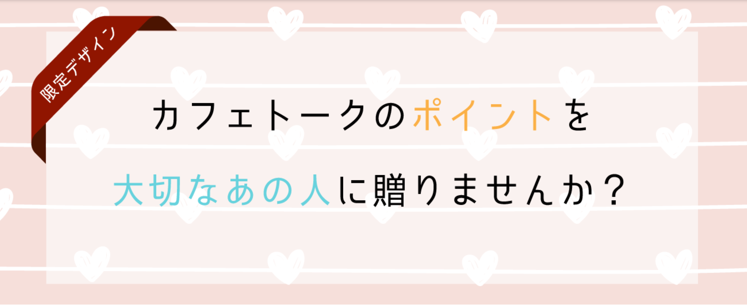 カフェトークのギフトカードは、レッスン予約に使用する「ポイント」を1,000ポイント(1,100円税込)からプレゼントすることができる電子ギフトカードです。