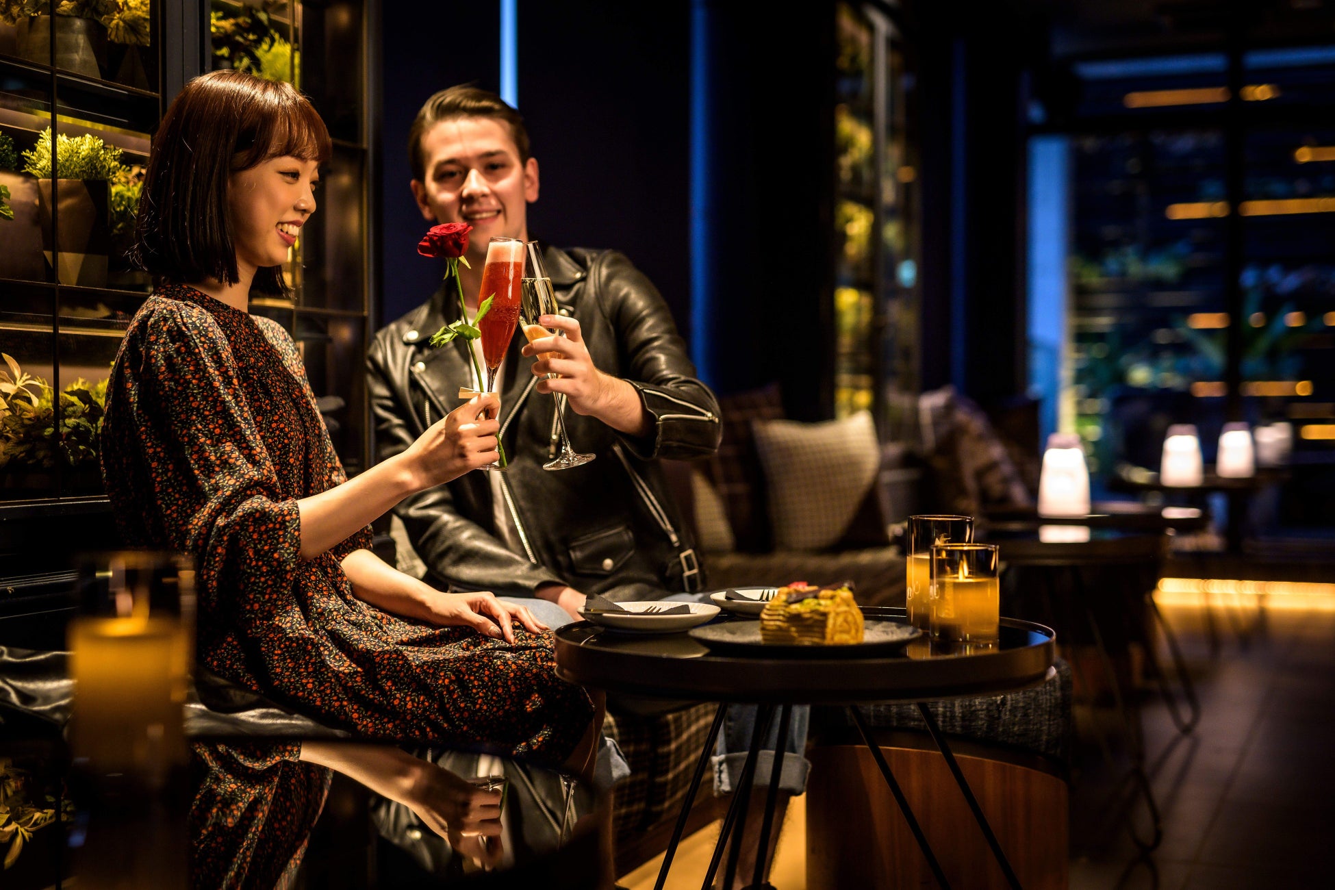 東京では、ホテル最上階の東京タワーを望むメインバー「THE LIVELY BAR」にて、クリスマス限定カクテルと麻布十番の人気フランス菓子店「ルポミエ」のクリスマスケーキが一緒に楽しめるステイプランをご用意。濃厚なチョコレートとバナナがふんだんに使われたクリスマスケーキ「チョコレートバナナホールケーキ」と、苺の甘酸っぱい風味が香るエレガントなカクテル「レオナルド」のペアリングをお楽しみください。カクテルのスモークとバラの演出はサプライズにもぴったり。ご希望の方は客室でもお召し上がりいただけます。ケーキは、キャラメル味が特徴の「ブッシュドノエルキャラメルブリュレ」も選択可。