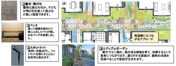 さらに、住民が共同で実の成る植物を育て、収穫できる共用の「エディブルガーデン(食べられる植栽)」スペースを設け、コミュニティの活性化を図っています。