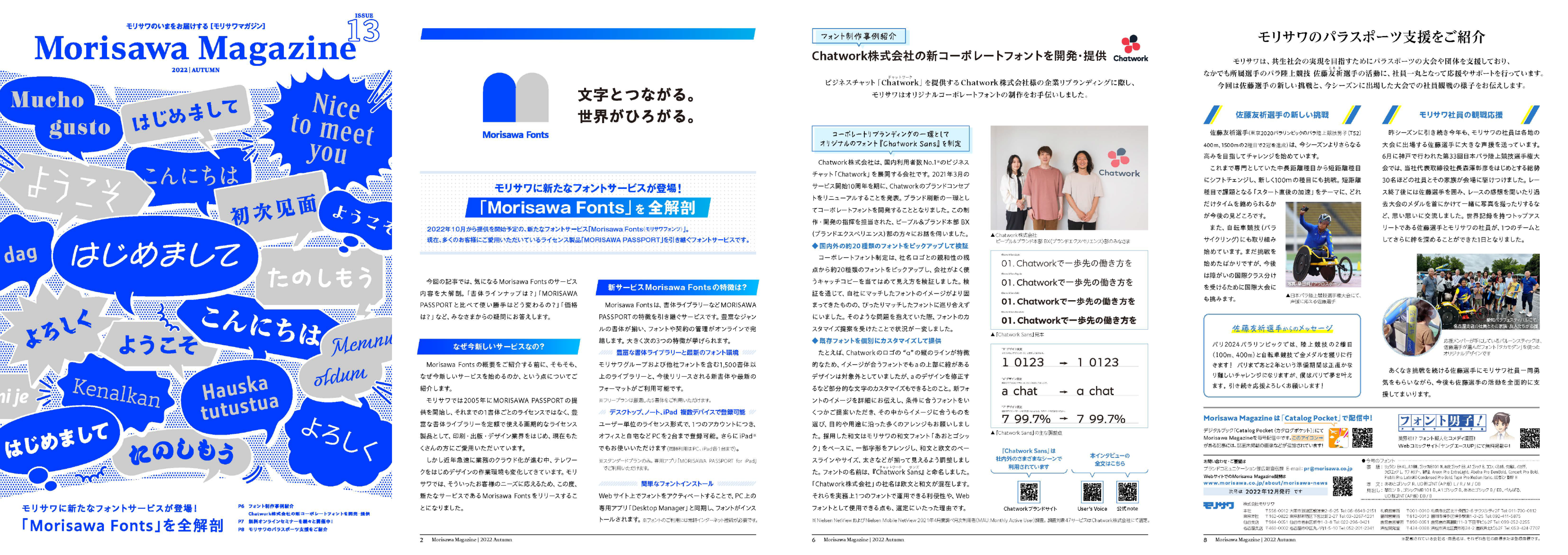 株式会社モリサワは、広報誌「MORISAWA MAGAZINE」2022秋号を発行しました。