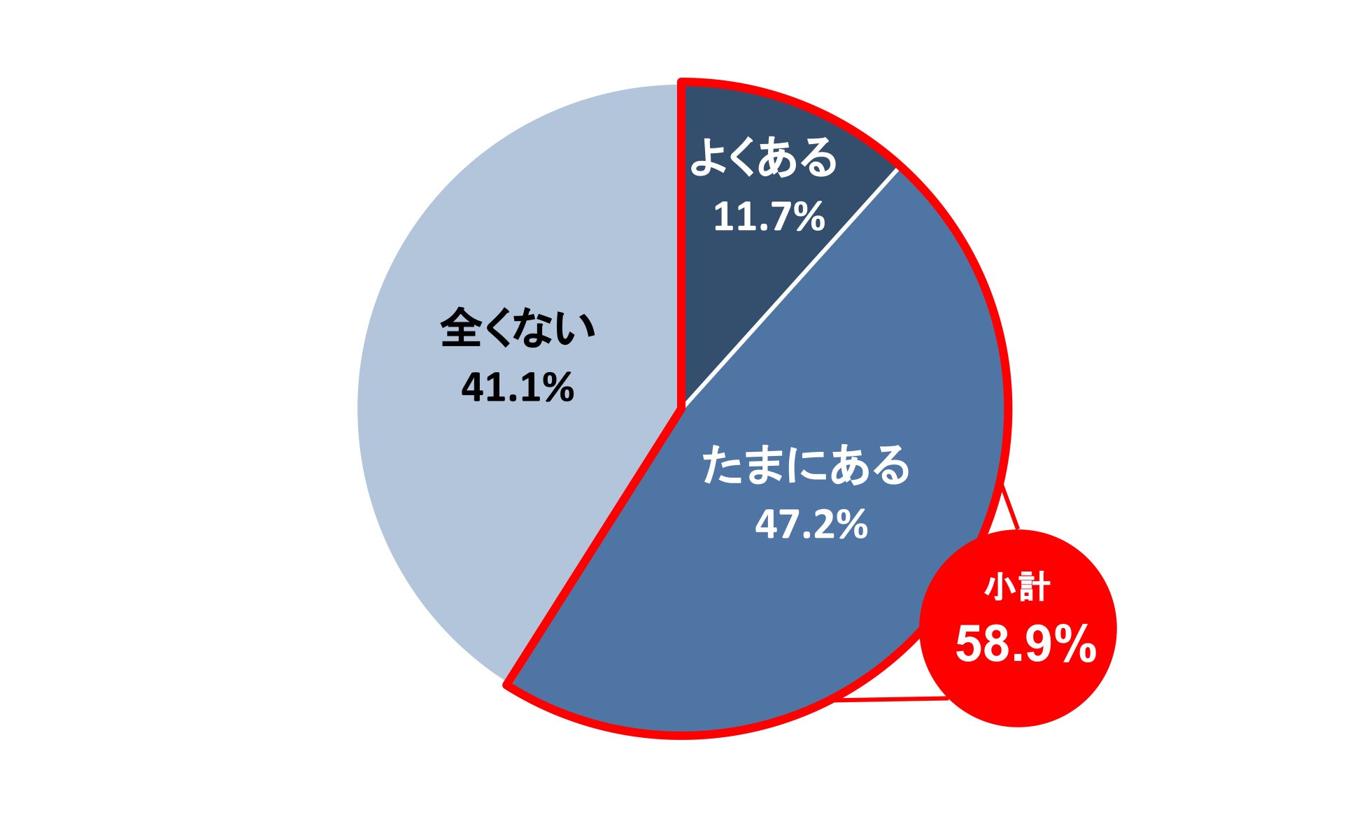 Q1で「取引先が原因でトラブルが起きた経験があるか」を聞いたところ、「よくある」が11.7%、「たまにある」が47.2%で、58.9%の人がトラブルを経験したことがあるとわかりました。