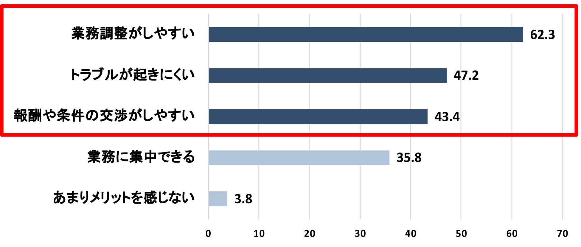 「報酬や条件の交渉がしやすい」、「トラブルが起きにくい」など仲介者の存在により取引が