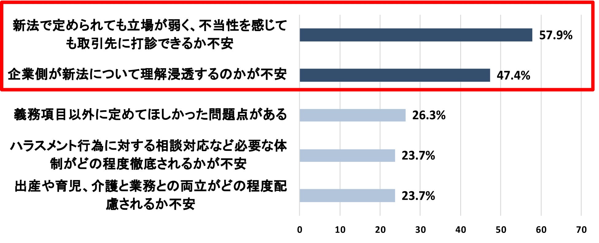 最も多い理由が「新法で定められても立場が弱く、不当性を感じても取引先に打診できるか