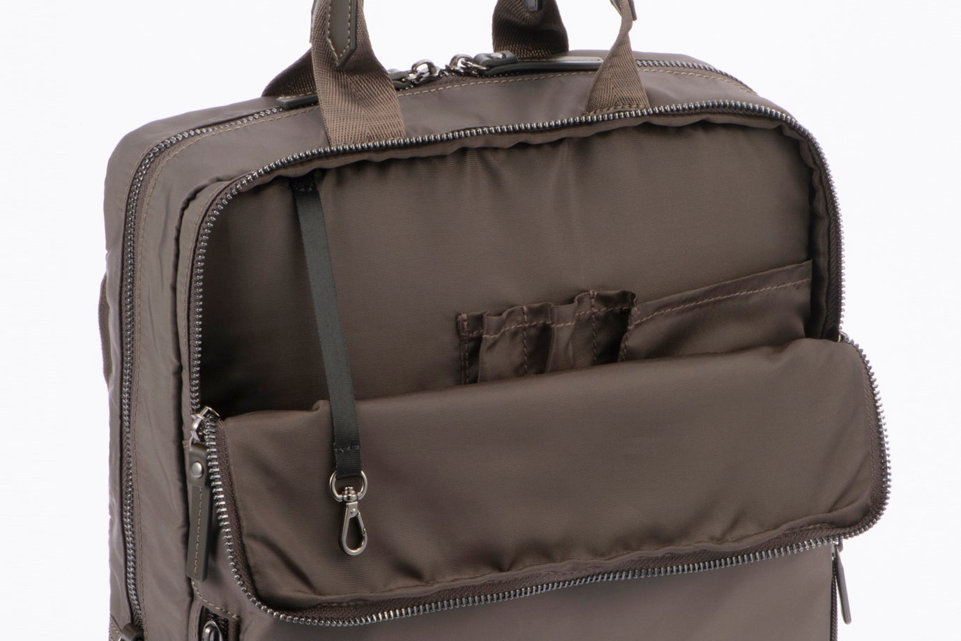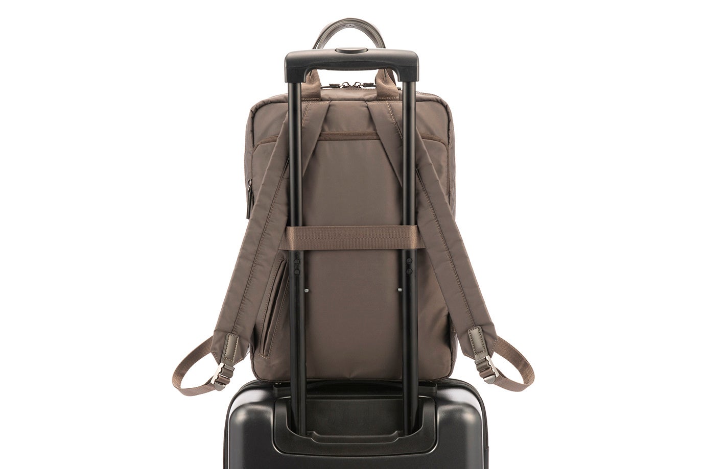 電車内などで前持ちした際に、周囲にも自分にも邪魔になりにくいスリムなシルエットです。フロントに前持ち時に左右どちらからでも荷物を取り出せるできる「ダブルアクセスポケット™」や、ペンや名刺入れなどのビジネスツールを収納できる「オーガナイザーポケット」配置しました。