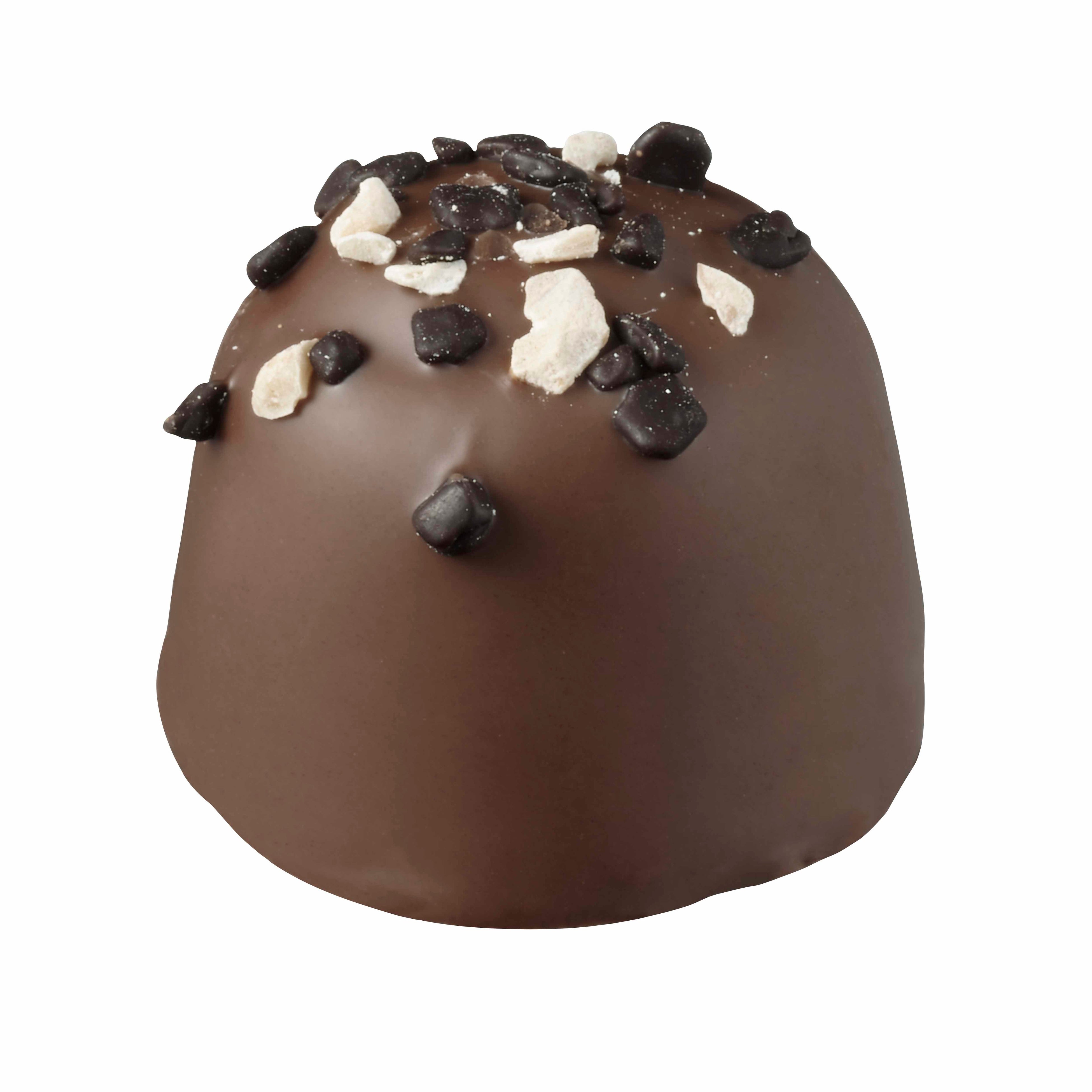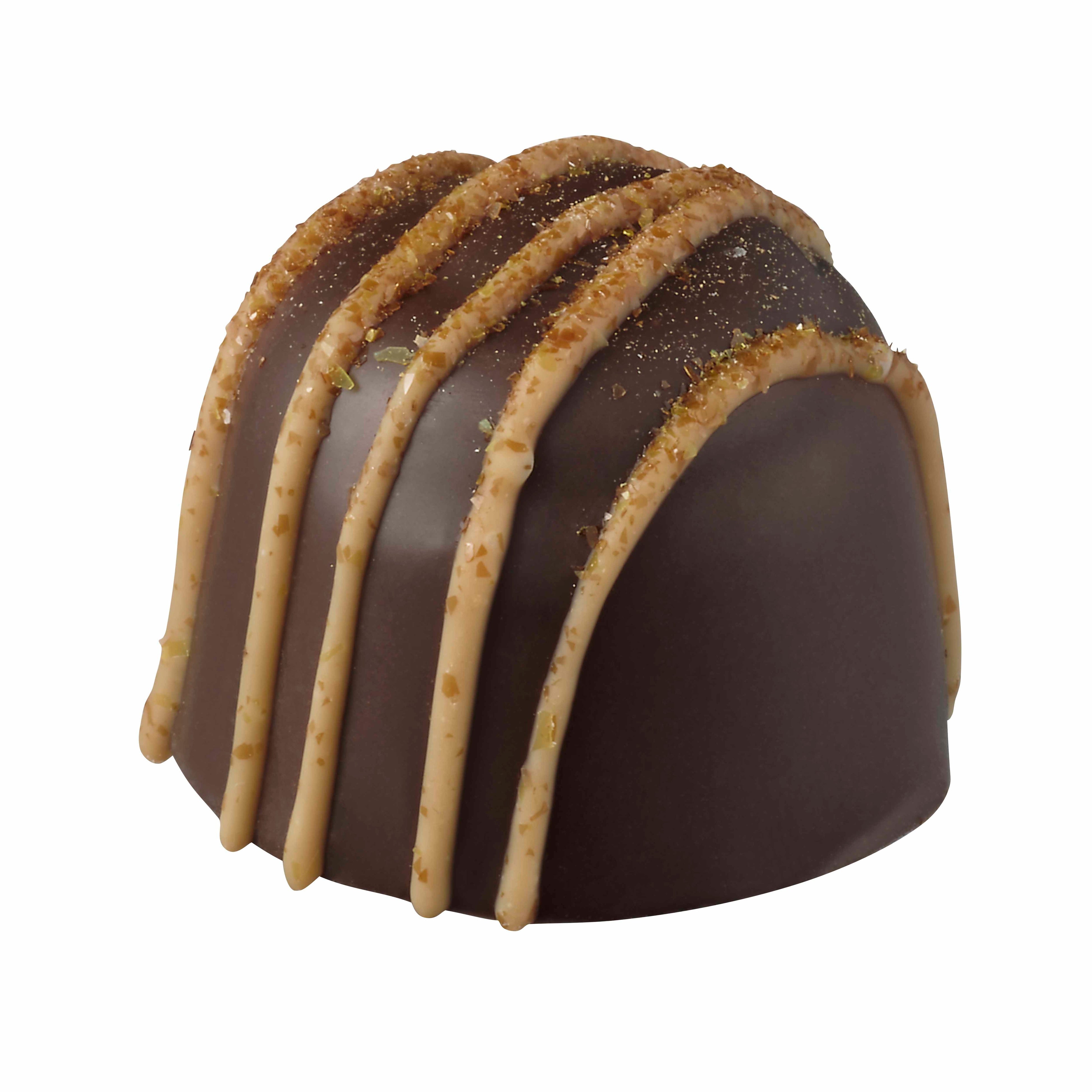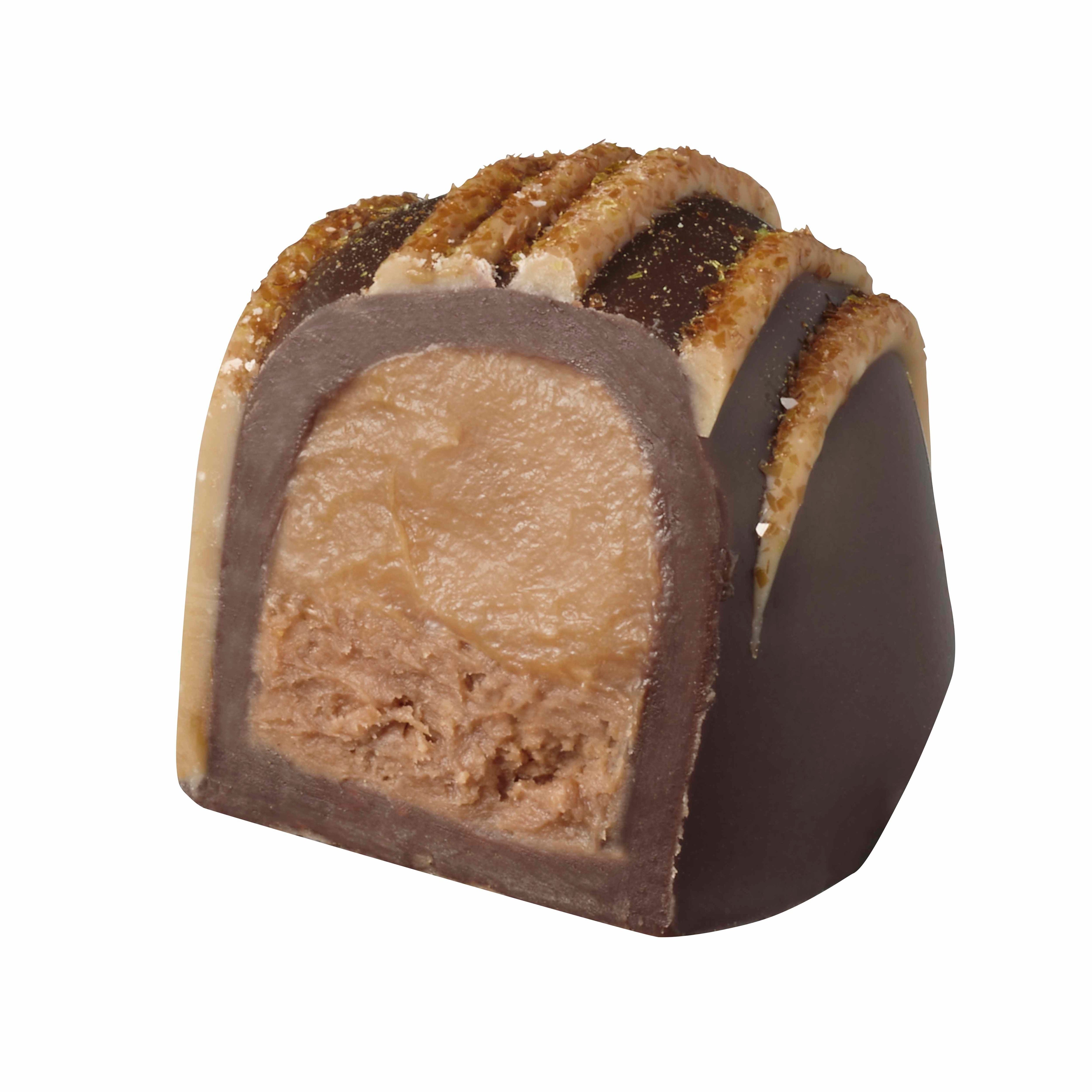 アップル風味のキャラメルガナッシュとヘーゼルナッツのプラリネをダークチョコレートで包み、ミルクチョコレートのラインと ゴールドのグリッターで飾った『タルト タタン』や、くるみとヘーゼルナッツの粒が入ったダークチョコレートクリームに、カカオの香りが豊かに広がるなめらかなダークチョコレートソースを重ね、ミルク&ダークチョコレートで包んだ『ブラウニー』、 グランマルニエの風味が香る、さくさくとした食感のフィユティーヌを加えたアーモンドペーストに、オレンジガナッシュを重ね、ダークチョコレートで包んだ『クレープ シュゼット』など6種類の限定トリュフが登場します。