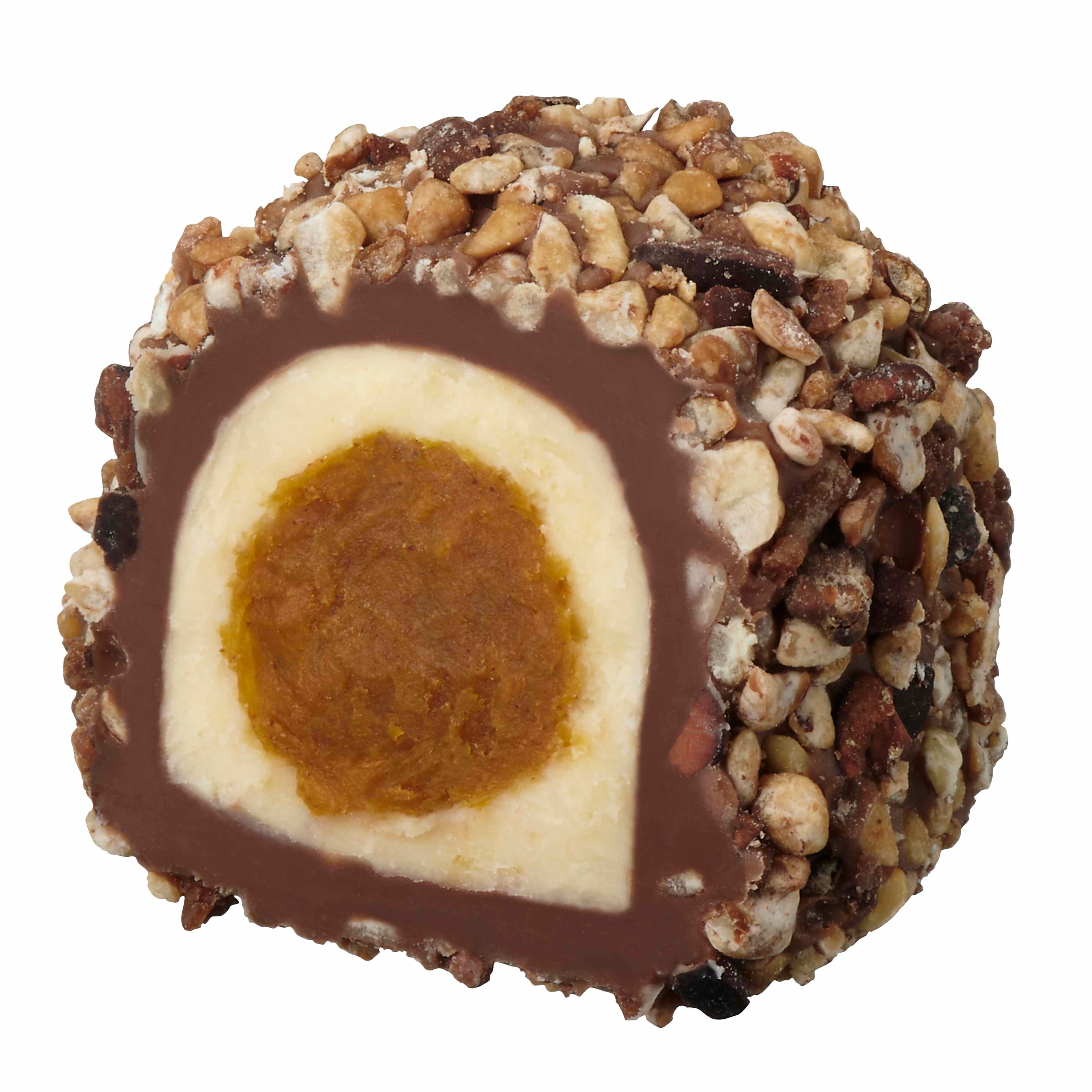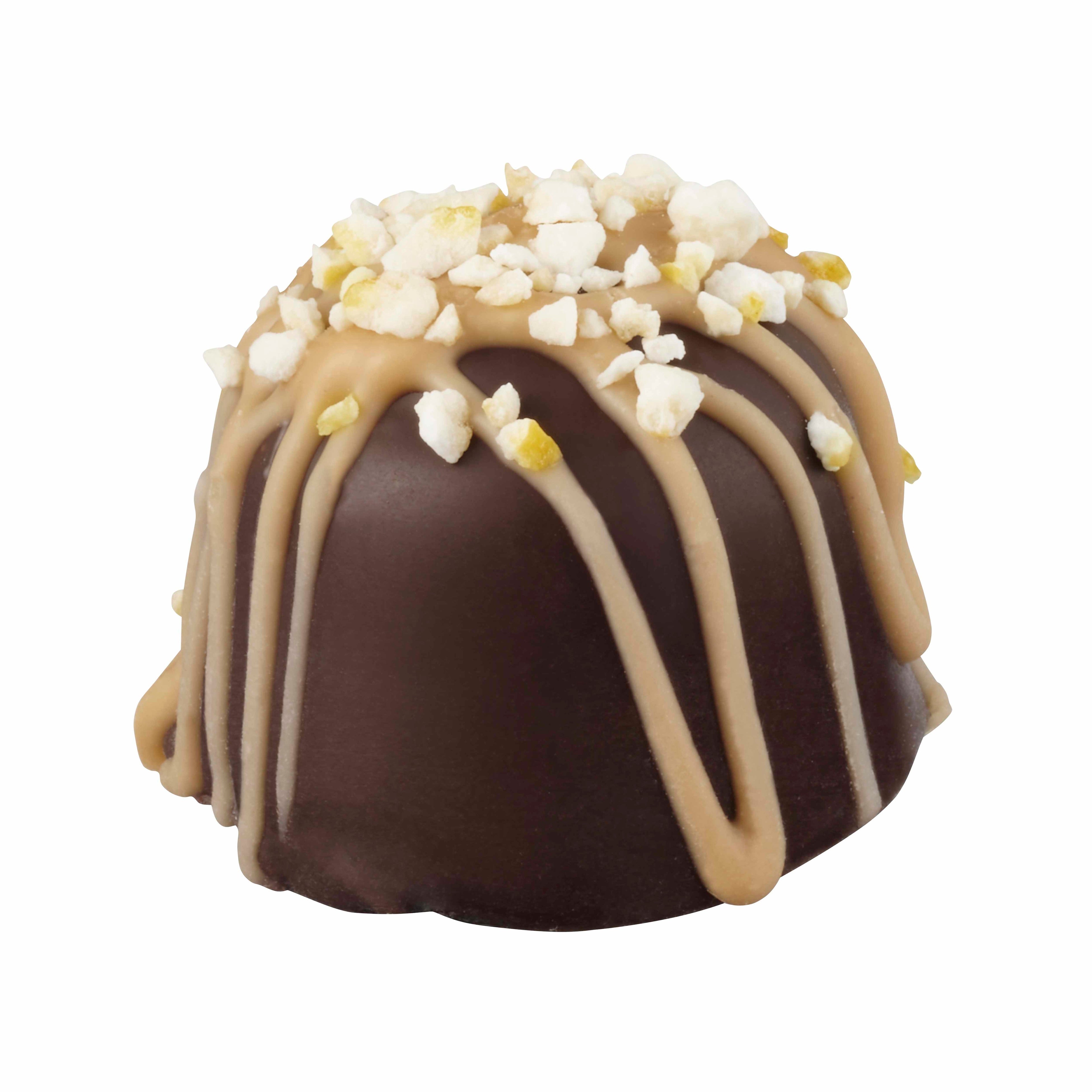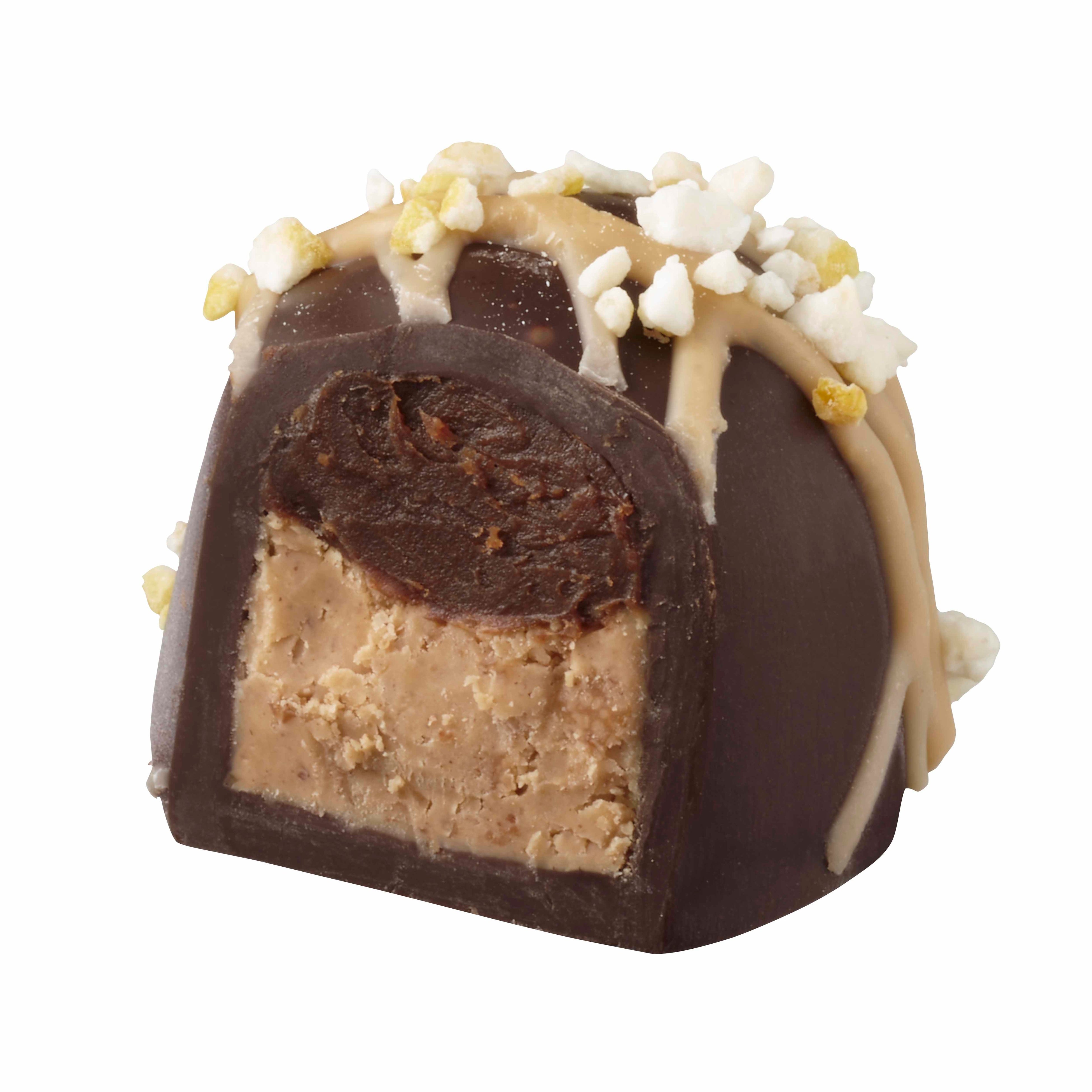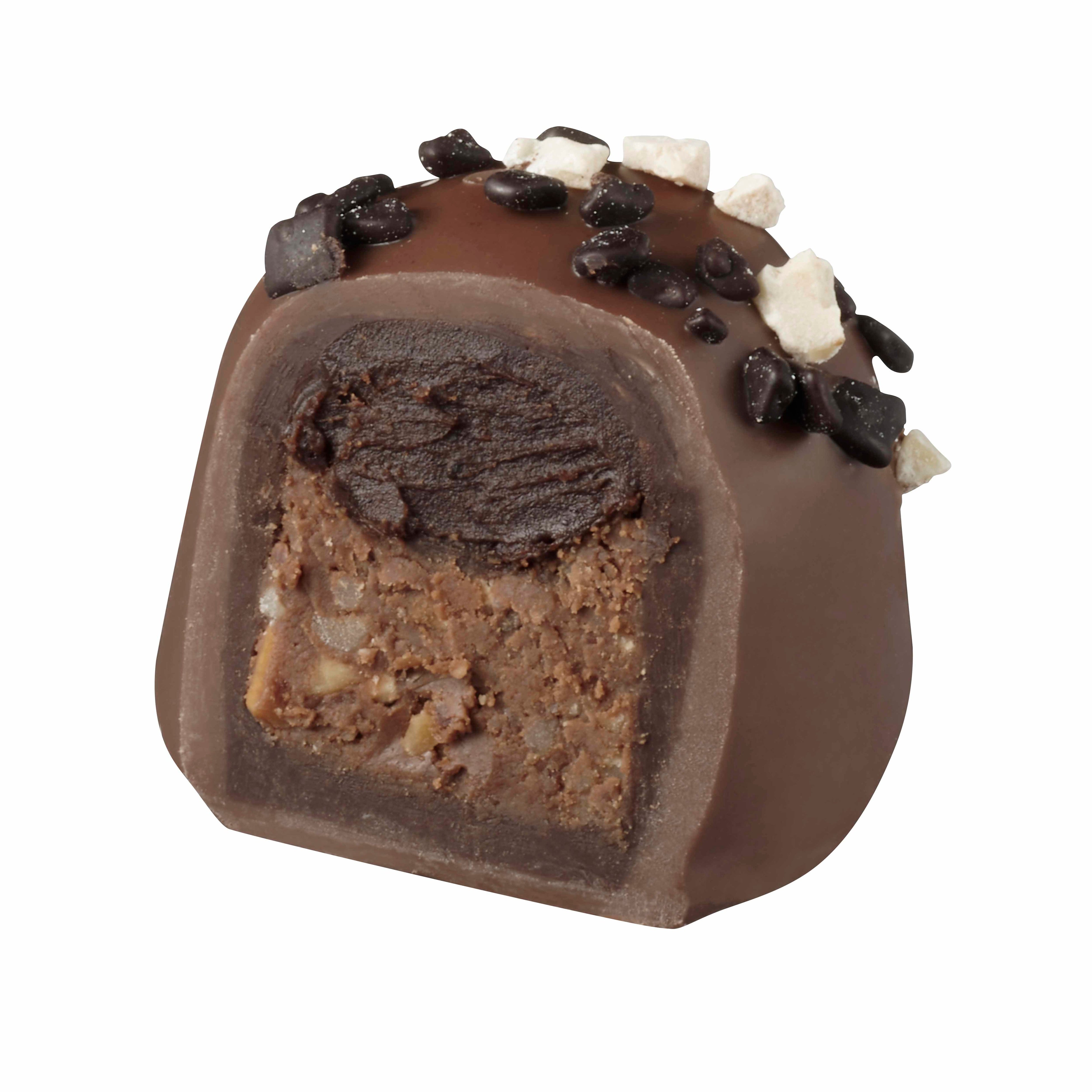 アップル風味のキャラメルガナッシュとヘーゼルナッツのプラリネをダークチョコレートで包み、ミルクチョコレートのラインと ゴールドのグリッターで飾った『タルト タタン』や、くるみとヘーゼルナッツの粒が入ったダークチョコレートクリームに、カカオの香りが豊かに広がるなめらかなダークチョコレートソースを重ね、ミルク&ダークチョコレートで包んだ『ブラウニー』、 グランマルニエの風味が香る、さくさくとした食感のフィユティーヌを加えたアーモンドペーストに、オレンジガナッシュを重ね、ダークチョコレートで包んだ『クレープ シュゼット』など6種類の限定トリュフが登場します。