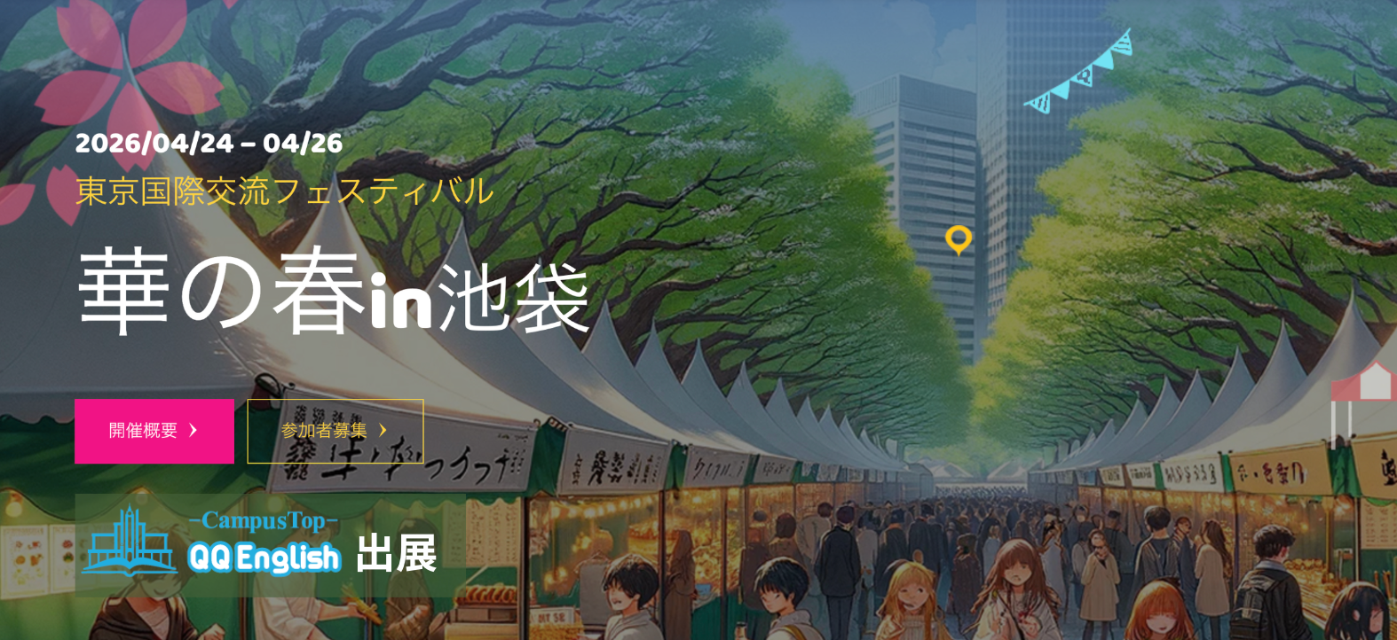 株式会社QQ English(本社:東京都新宿区、代表取締役:藤岡頼光、以下QQEnglish)は、2026年4月24日(金)〜26日(日)に池袋西口公園野外劇場で開催される国際交流イベント「華の春」にて、英語を“実際に使う”体験型ブースを出展いたします。本イベントでは、英語を「勉強する」のではなく、「ちょっと使ってみる」体験を提供します。英語でドリンクを注文し、フィリピン人教師との会話の中でガチャガチャを楽しむなど、来場者自身が英語を使う場を用意しています。こうした体験を通じて、来場者には「英語が通じた」という小さな成功体験とともに、フィリピン人教師との交流を通じた異文化体験を提供します。QQEnglishは、この一歩をきっかけに、英語を“学ぶ”から“使う”へと行動が変わる状態を目指します。
