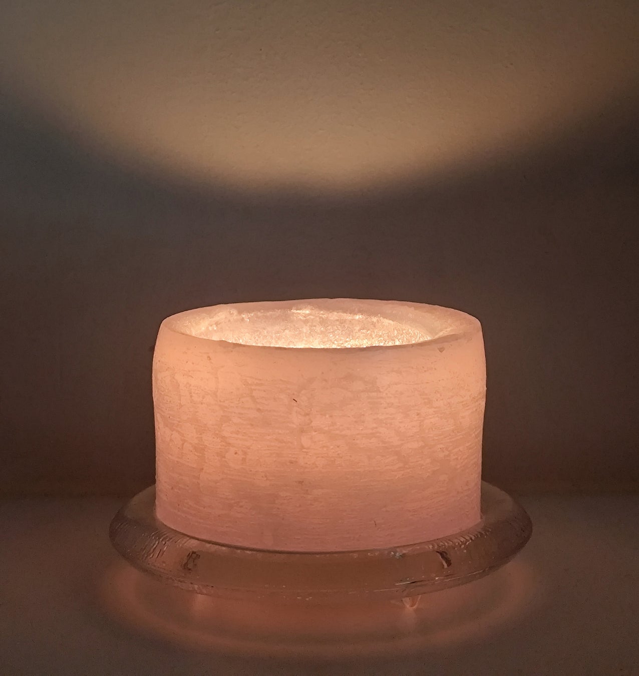 大きなキャンドルを大切に使い切ることを「キャンドルを育てる」といいます。ピラーキャンドルは、少しずつ溶けて使い切るあいだに、さまざまな表情をみせてくれるので、キャンドルの魅力を存分に味わえます。あえて直径を太めに設計することで、炎の光がロウの壁を内側から透かし、キャンドル全体がまるでランタンのような柔らかなあかりが楽しめます。