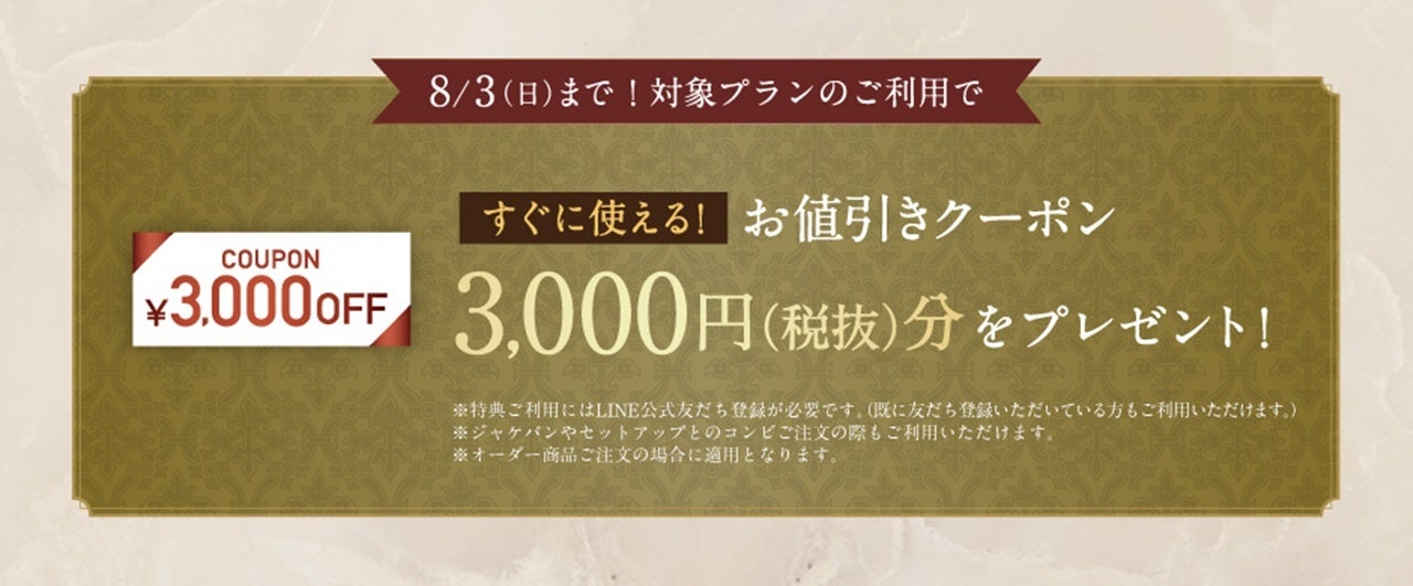 全40店舗対象!その場で使える《3,000円OFF》早割クーポンプレゼント!