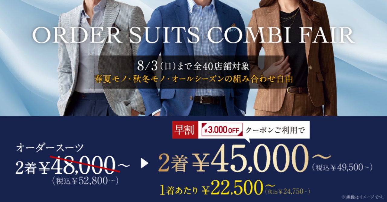 【本日開始!】オーダースーツ専門店「グローバルスタイル」が8月3日(日)までの期間限定でお得なフェアを開催!対象プランのご利用で本格オーダースーツが1着あたり22,500円~(税込24,750円~)