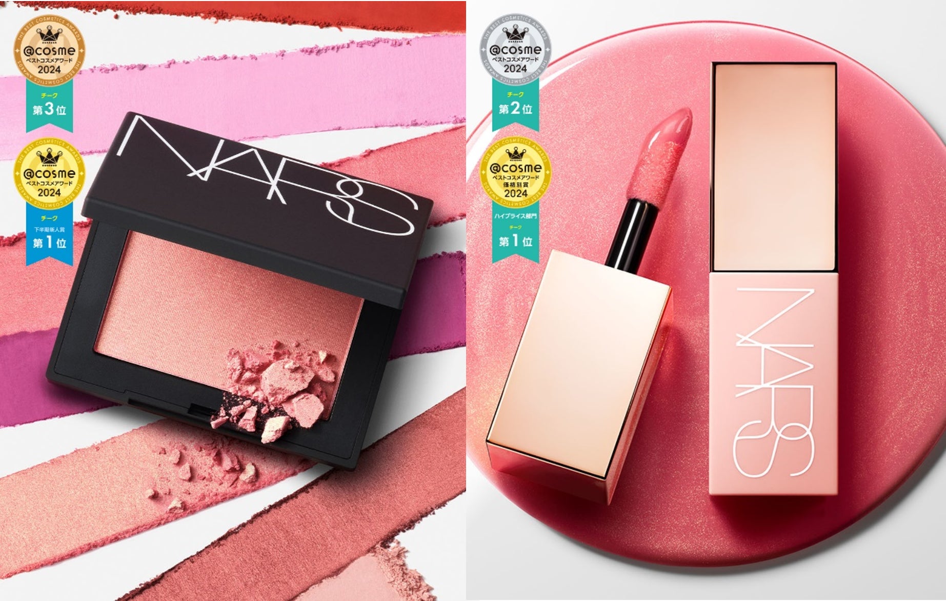 NARS 2024年下期ベストコスメ受賞最新情報:「ブラッシュ N」「アフターグロー リキッドブラッシュ」が@cosmeベストコスメアワード2024にて多数のベストコスメを受賞