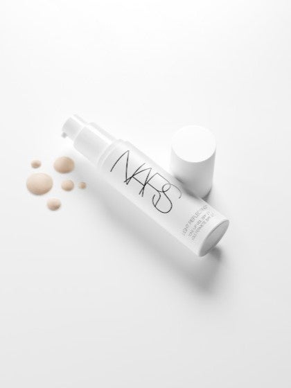 NARS史上初となるトーンアップタイプのプライマー「ライトリフレクティング トーンアップヴェール」は、くすみを補正し、肌を整え、化粧持ちが長時間*持続する、明るい肌へと導きます。 スキンケア成分を81%配合した革新的なハイブリッド処方により、まるで美容液のようなテクスチャーで心地よく肌に馴染みます。ブライトニングパールブレンドが、光を柔らかく拡散し、くすみを晴らして、白浮きせずに透明度の高い肌へと導きます。保湿成分のヒアルロン酸とトリプルシュガー コンプレックスが肌にうるおいを与え、みずみずしく艶やかな、まるでスキンケア直後のような肌へ。肌を守り、整え、光と透明感で限りなく澄み渡る肌へ。