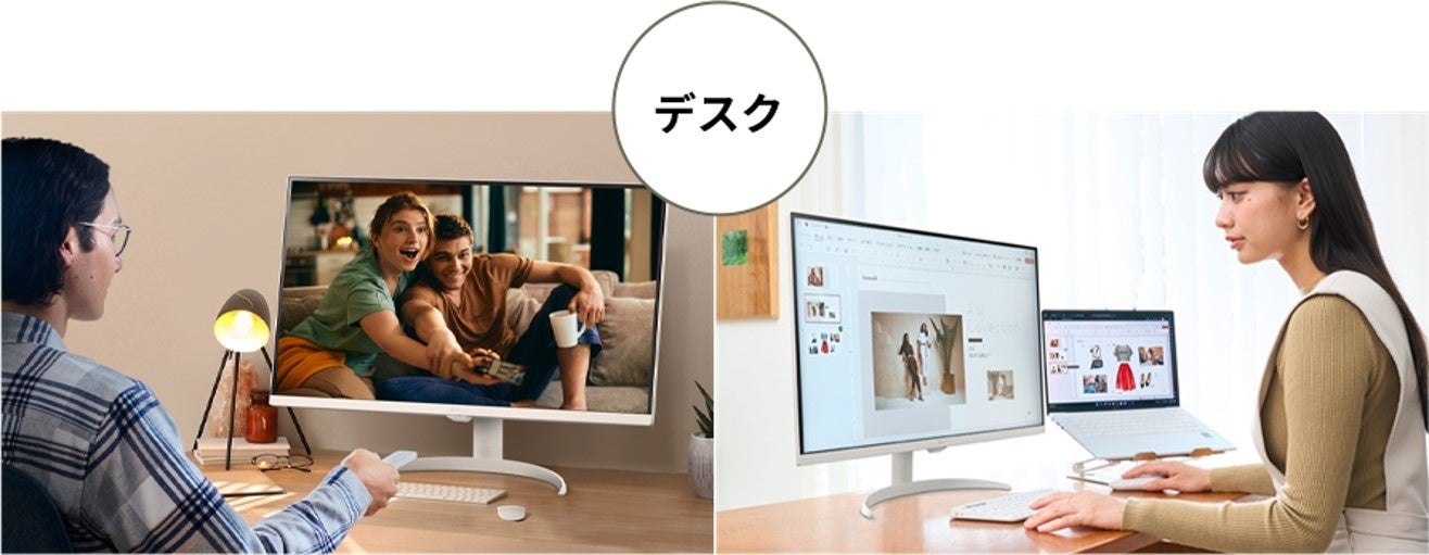 4K解像度(3840×2160)に27インチはIPSパネル、31.5インチはVAパネルを採用。広いワークスペースと高精細な4K解像度は、仕事や作業の効率を大幅にUPします。また、「長時間の作業でも没頭しやすい」といったメリットも。