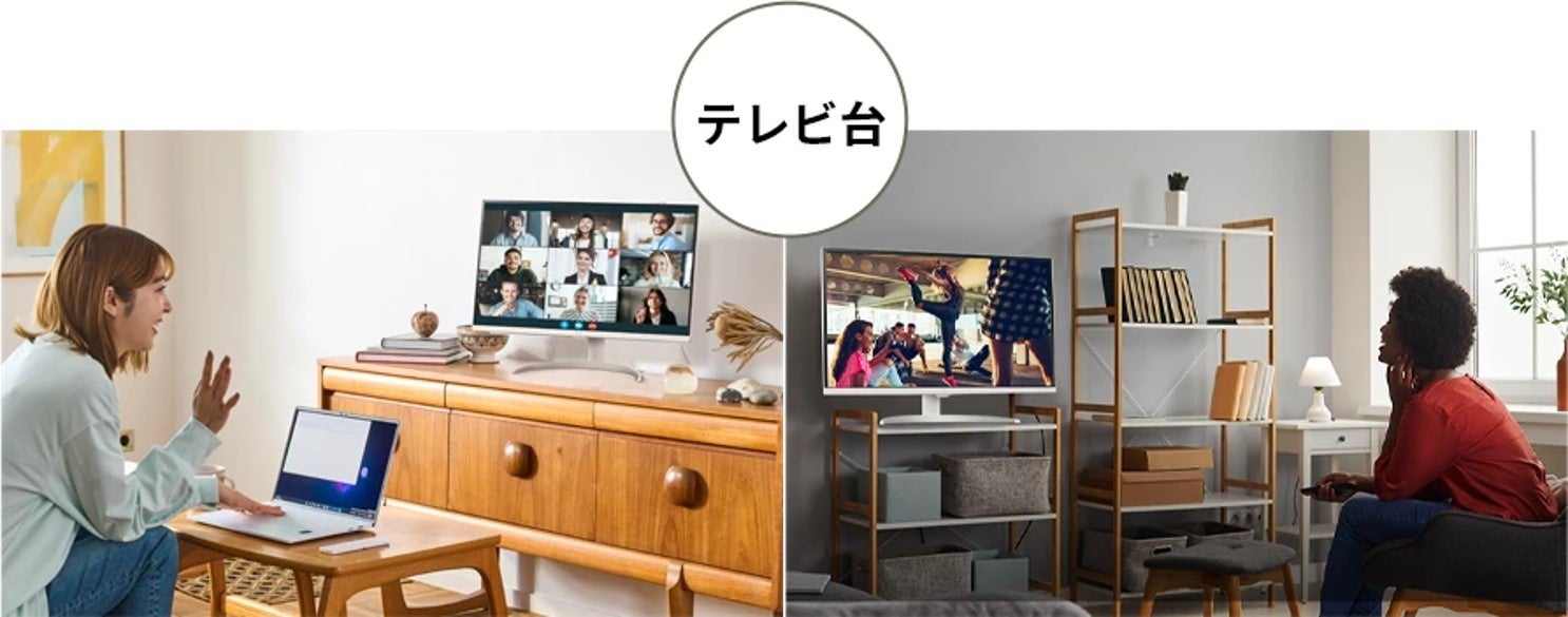テレビのように、PC、スマホ、タブレット、マウスやキーボードまでコードレスで繋げられます。デスクを置かないお部屋や、壁際やコーナースペースなどの小さなエリアにも置くことができ、お部屋が理想のパーソナルスペースに生まれ変わります。