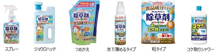 『おうちの草コロリ』シリーズは、2013年4月に食品成分生まれ『みんなにやさしい除草剤 おうちの草コロリ』として発売以来、ラインアップを拡大してきました。使いやすいスプレーや広範囲にたっぷり使えるジョウロタイプ、根までしっかり枯らす粒タイプなどを取り揃えています。ホームセンターや種苗店だけでなく、総合スーパーやドラッグストアへと幅広く展開しています。