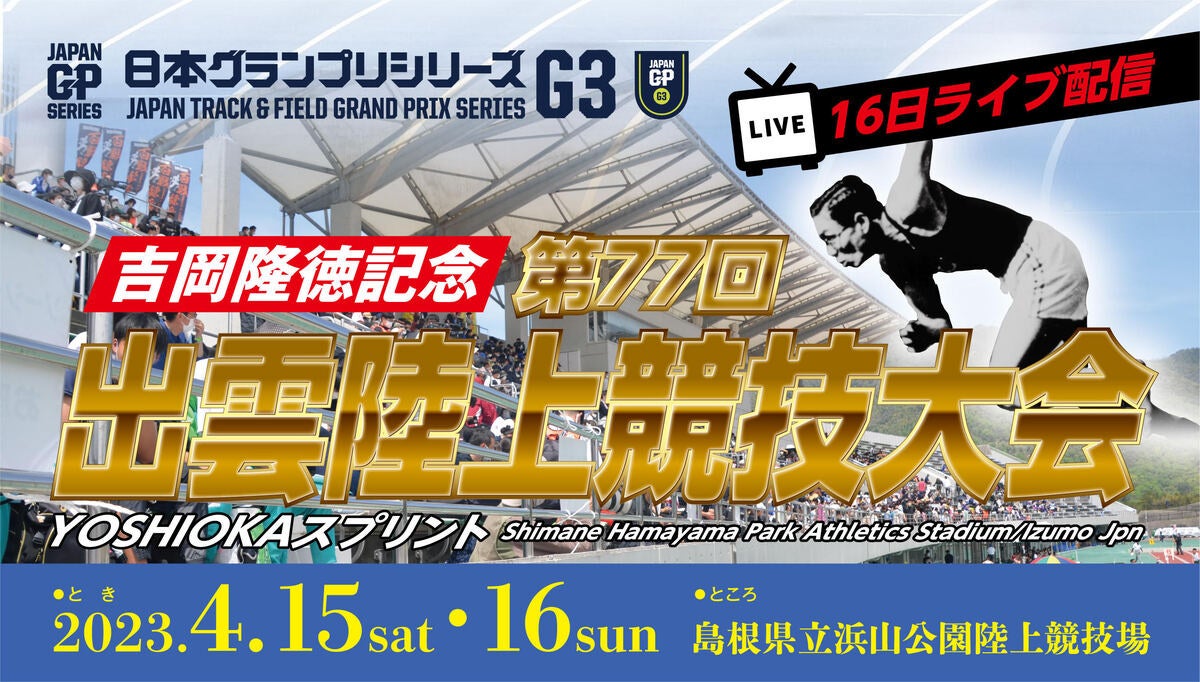 2023年4月16日(日) に開催する日本グランプリシリーズ グレード3 「吉岡隆徳記念第77回出雲陸上競技大会」を日本陸連公式YouTubeにてライブ配信することが決定しました!