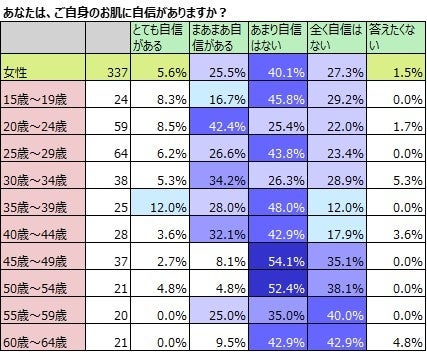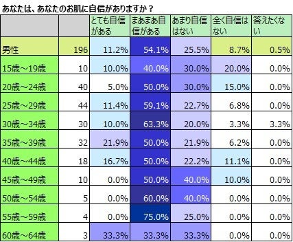 一般的な調査では、肌に自信があるのは男性17.9%、女性21.8%。