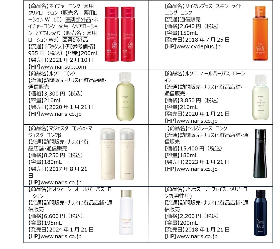 【ナリス化粧品の主なふきとり化粧水】