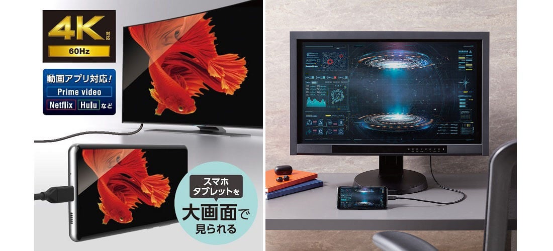スマホ・タブレットなどの映像をテレビの大画面で!ケーブルを接続するだけ、人気の動画サービスにも対応した、USB-C映像変換ケーブルを新発売