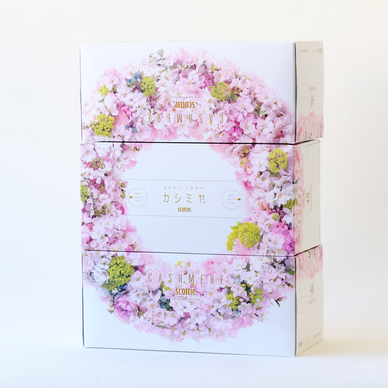 第一園芸が監修『スコッティ カシミヤ サクラ』のティシューに、桜を中心とした花々のリースで彩られた特別パッケージが登場~ひと足早い春の訪れを暮らしに~